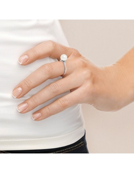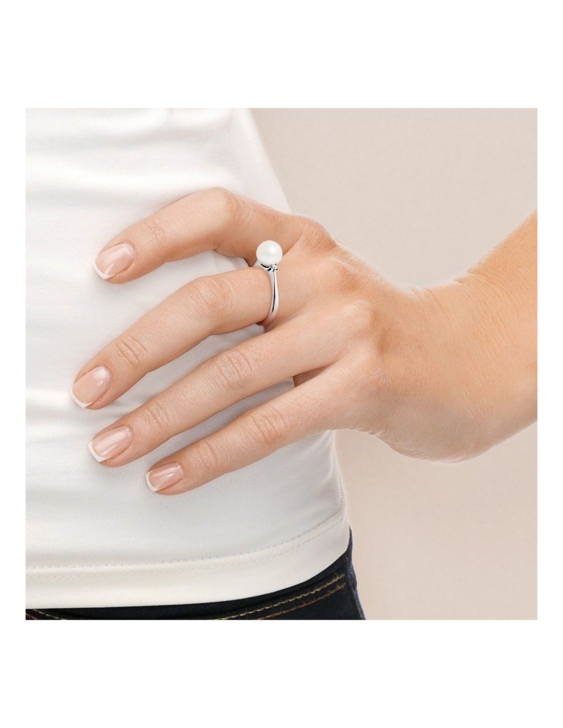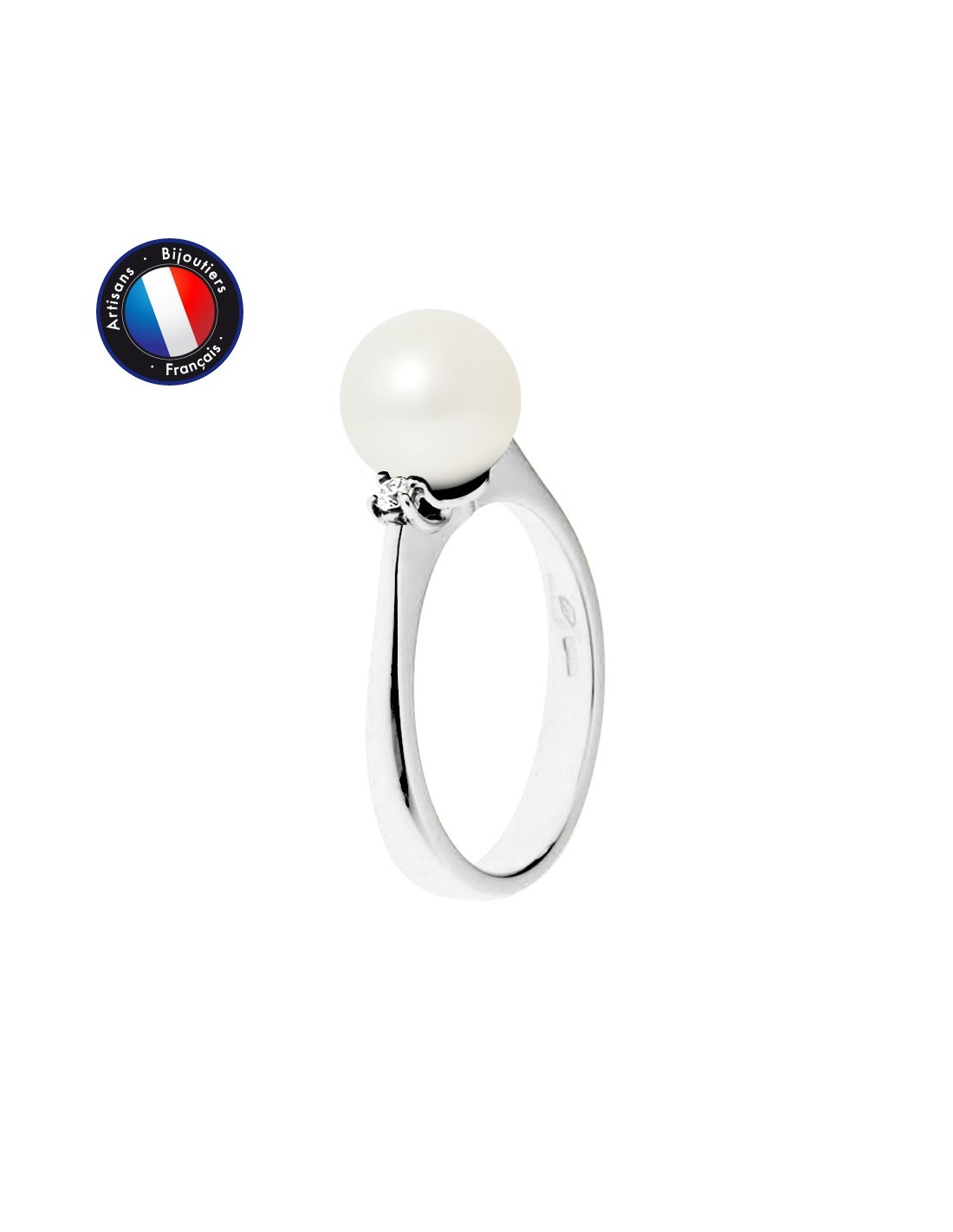 Bague- Véritables Perles de Culture d'Eau Douce- Colori Blanc Naturel- diamètre 8-9 mm- Qualité de la Perleÿ: AAA+- Taille 48 (EU)- Or Blanc 9 Cts- Orné de Diamants 0,06 Cts- Livré dans un écrin Prestige et accompagné d'un Certificat d'Authenticité et de Garantie- Fabriqué par nos Artisans Bijoutiers Français- Garanti 2 ans contre tout défaut de fabrication Internationale