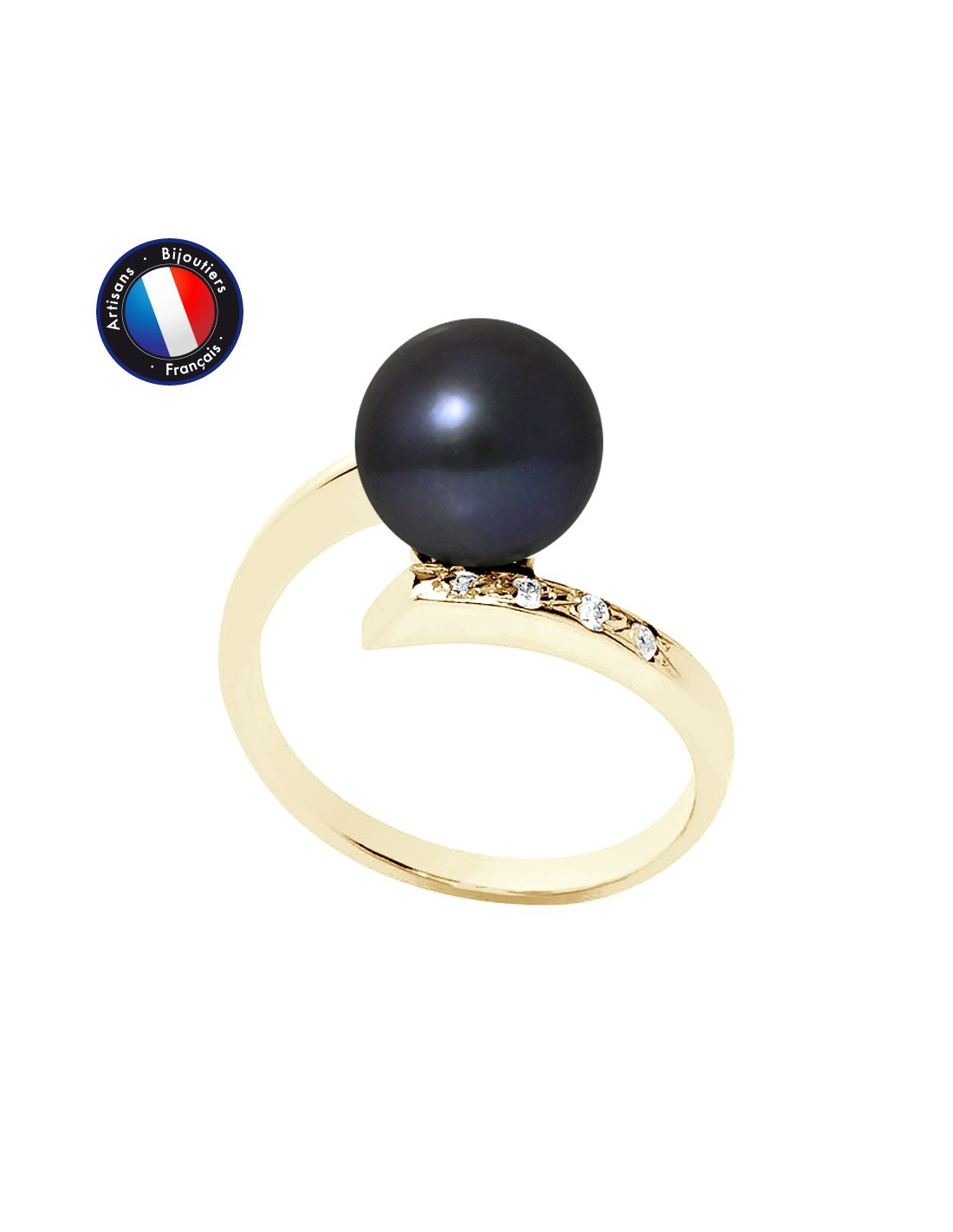 Bague- Véritables Perles de Culture d'Eau Douce- Colori Black Tahiti- diamètre 8-9 mm- Qualité de la Perleÿ: AAA+- Taille 48 (EU)- OrJaune 9 Cts- Orné de Diamants 0,04 Cts- Livré dans un écrin Prestige et accompagné d'un Certificat d'Authenticité et de Garantie- Fabriqué par nos Artisans Bijoutiers Français- Garanti 2 ans contre tout défaut de fabrication Internationale