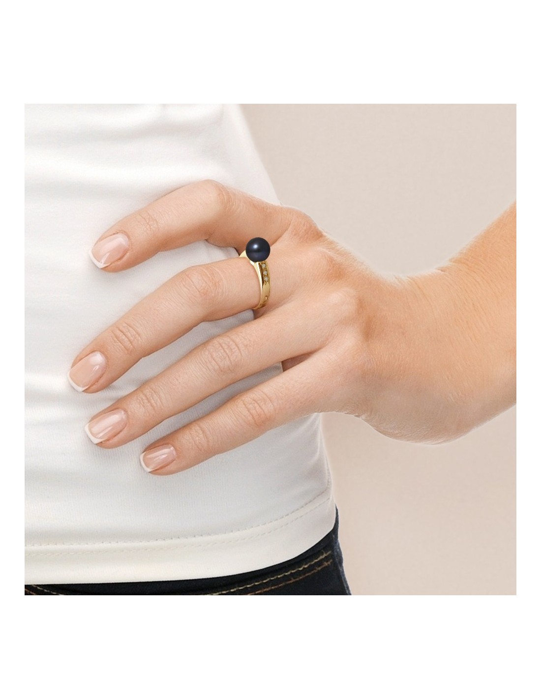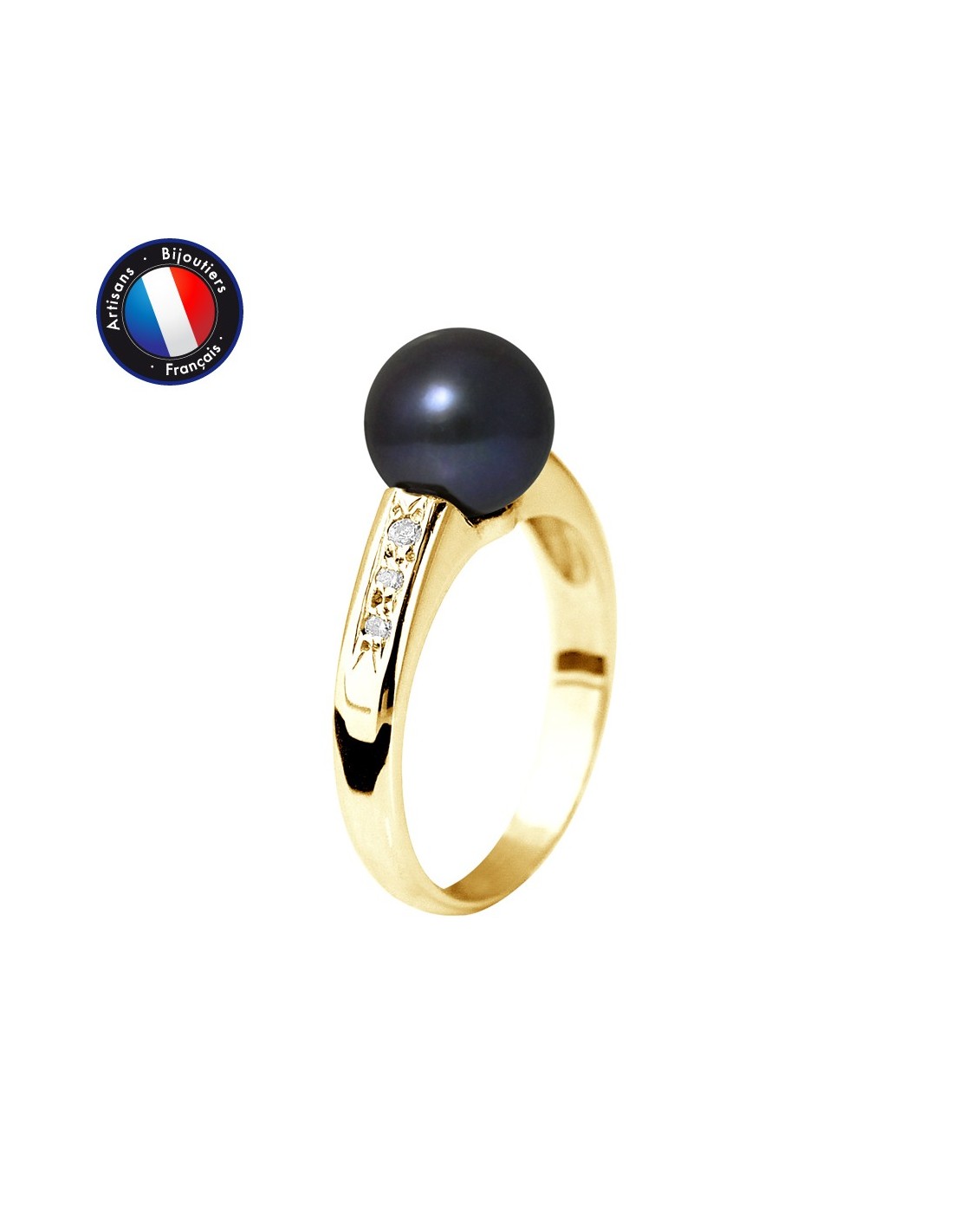 Bague- Véritables Perles de Culture d'Eau Douce- Colori Black Tahiti- diamètre 8-9 mm- Qualité de la Perleÿ: AAA+- Taille 48 (EU)- OrJaune 9 Cts- Orné de Diamants 0,06 Cts- Livré dans un écrin Prestige et accompagné d'un Certificat d'Authenticité et de Garantie- Fabriqué par nos Artisans Bijoutiers Français- Garanti 2 ans contre tout défaut de fabrication Internationale