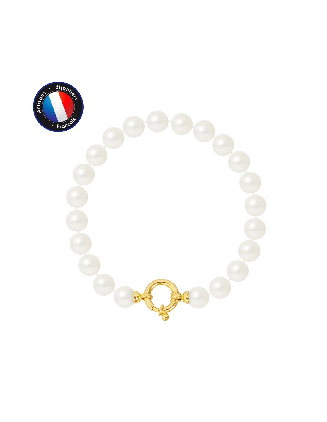 Bracelet- Véritables Perles de Culture d'Eau Douce- Colori Blanc Naturel- diamètre 7-8 mm- Qualité de la Perleÿ: AAA+- Fermoir Anneau Marin- OrJaune 9 Cts- Livré dans un écrin Prestige et accompagné d'un Certificat d'Authenticité et de Garantie- Fabriqué par nos Artisans Bijoutiers Français- Garanti 2 ans contre tout défaut de fabrication Internationale