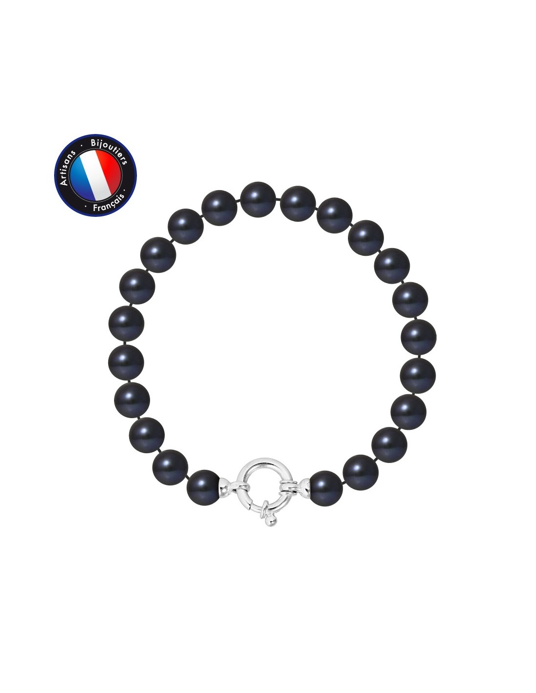 Bracelet- Véritables Perles de Culture d'Eau Douce- Colori Black Tahiti- diamètre 7-8 mm- Qualité de la Perleÿ: AAA+- Fermoir Anneau Marin- Or Blanc 9 Cts- Livré dans un écrin Prestige et accompagné d'un Certificat d'Authenticité et de Garantie- Fabriqué par nos Artisans Bijoutiers Français- Garanti 2 ans contre tout défaut de fabrication Internationale