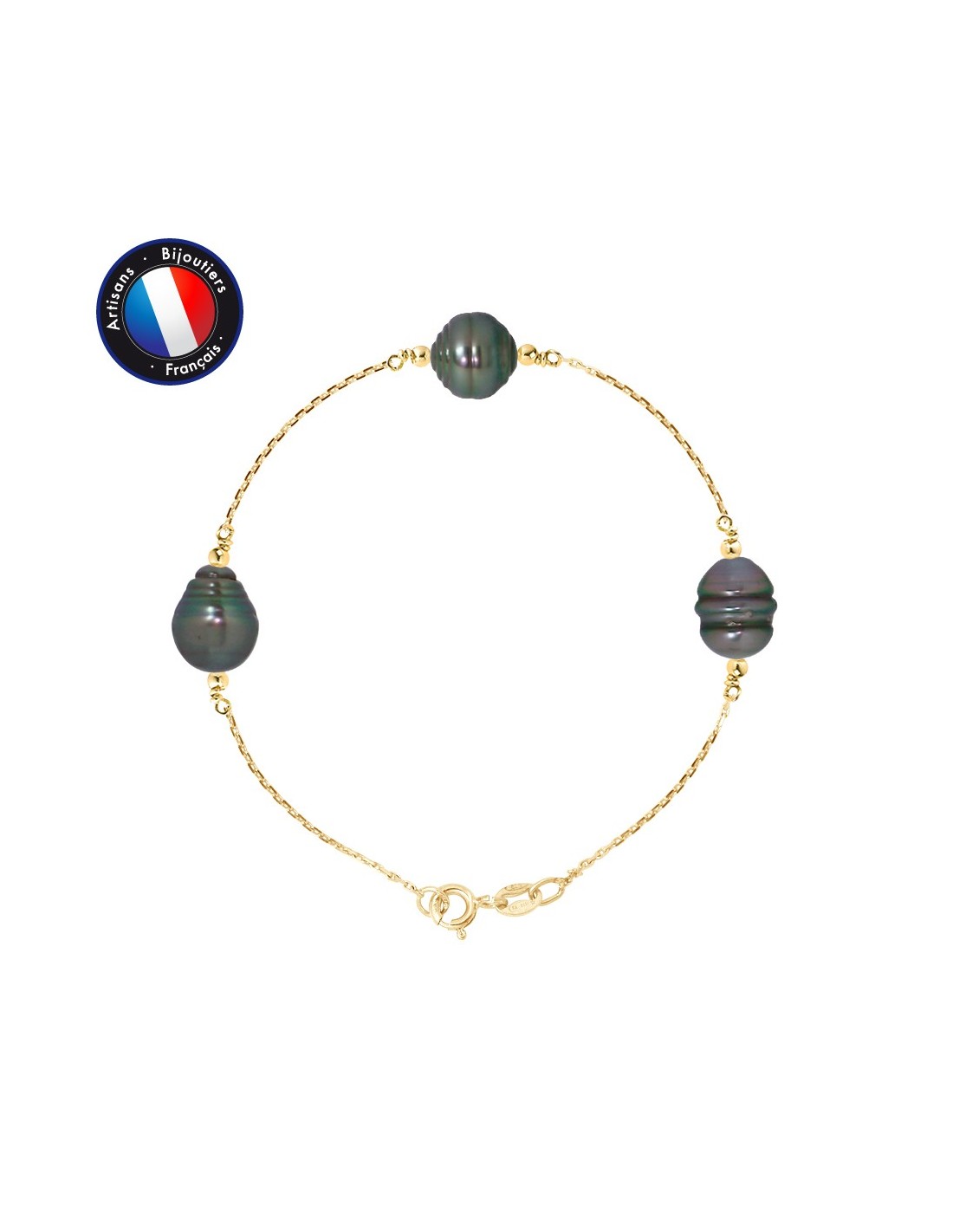 Bracelet- 3 Véritables Perles de Culture d'Eau Douce- Colori Blanc Naturel- diamètre 8-9 mm- Qualité de la Perleÿ: AAA+- Fermoir Anneau Ressort- OrJaune 9 Cts- Livré dans un écrin Prestige et accompagné d'un Certificat d'Authenticité et de Garantie- Fabriqué par nos Artisans Bijoutiers Français- Garanti 2 ans contre tout défaut de fabrication Internationale