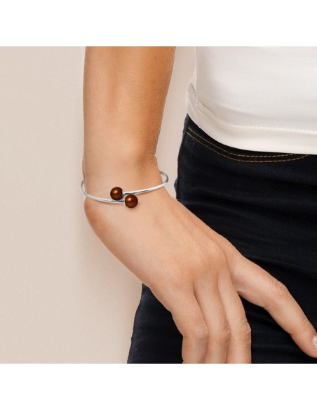 Bracelet- Véritables Perles de Culture d'Eau Douce- Diamètre 9-10 mm- Colori Chocolat- Qualité de la Perle : AAA+-Jonc- Argent 925 Millièmes Rhodié- Taille de 14 cm … 20 cm- Livré dans un écrin Prestige et accompagné d'un Certificat d'Authenticité et de Garantie- Fabriqué par nos Artisans Bijoutiers Français- Garanti 2 ans contre tout défaut de fabrication Internationale