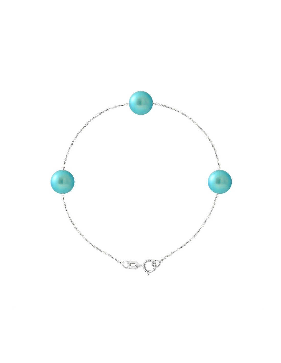 Bracelet 3 Véritables Perles de Culture d'Eau Douce- Diamètre 7-8 mm- Colori Bleu Turquoise- Qualité de la Perle : AAA+- Chaîne For‡at / Longueur 18 cm Argent 925 Millièmes Rhodiée - Livré dans un écrin Prestige et accompagné d'un Certificat d'Authenticité et de Garantie- Fabriqué par nos Artisans Bijoutiers Français- Garanti 2 ans contre tout défaut de fabrication Internationale