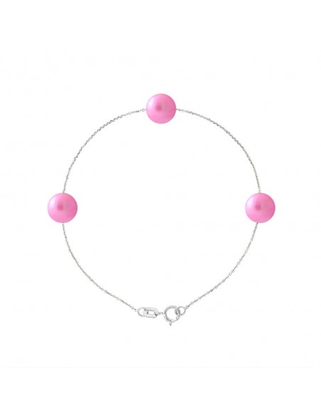 Bracelet 3 Véritables Perles de Culture d'Eau Douce- Diamètre 7-8 mm- Colori Rose Fushia- Qualité de la Perle : AAA+- Chaîne For‡at / Longueur 18 cm Argent 925 Millièmes Rhodiée - Livré dans un écrin Prestige et accompagné d'un Certificat d'Authenticité et de Garantie- Fabriqué par nos Artisans Bijoutiers Français- Garanti 2 ans contre tout défaut de fabrication Internationale