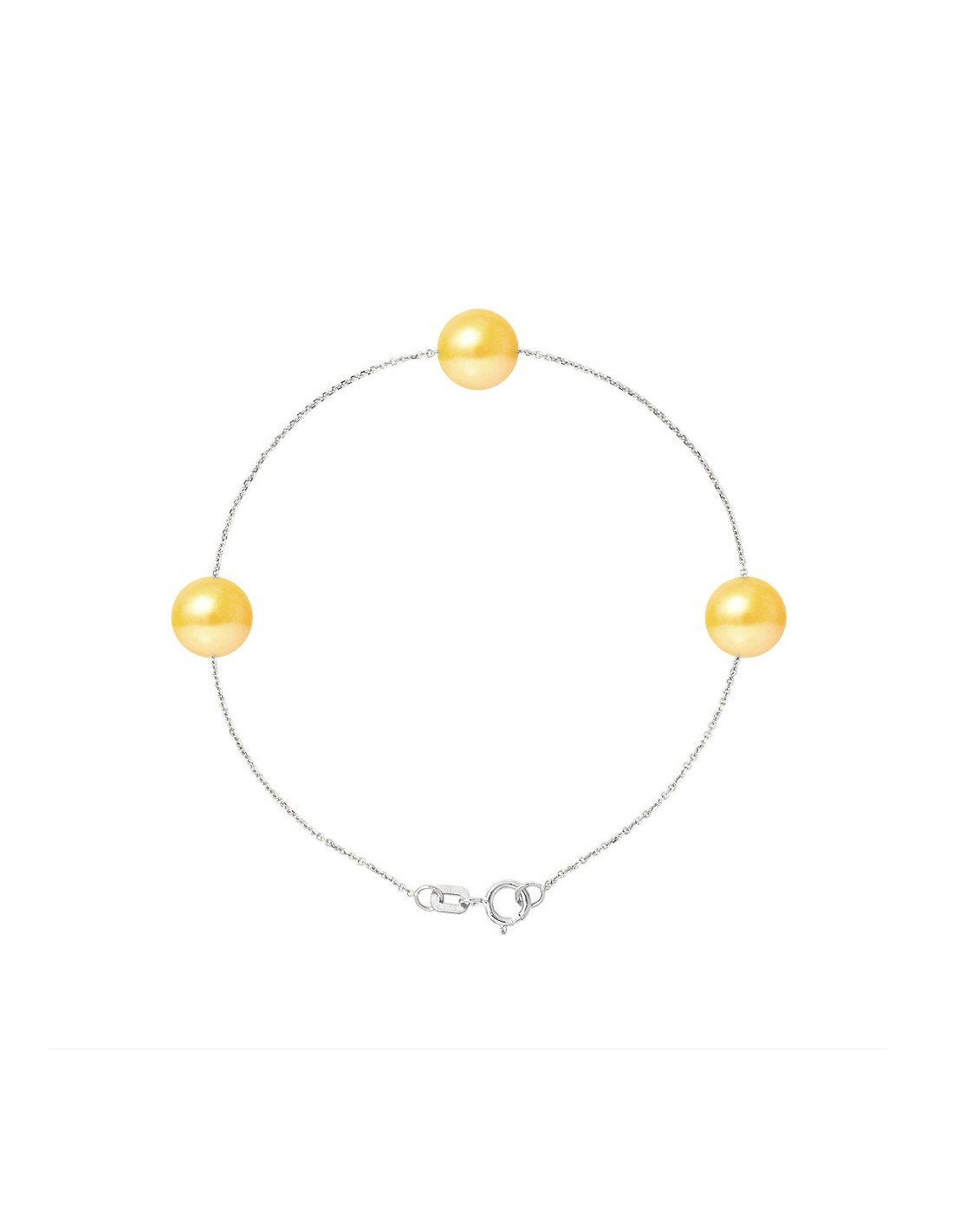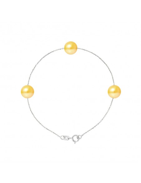 Bracelet 3 Véritables Perles de Culture d'Eau Douce- Diamètre 7-8 mm- Colori Gold- Qualité de la Perle : AAA+- Chaîne For‡at / Longueur 18 cm Argent 925 Millièmes Rhodiée - Livré dans un écrin Prestige et accompagné d'un Certificat d'Authenticité et de Garantie- Fabriqué par nos Artisans Bijoutiers Français- Garanti 2 ans contre tout défaut de fabrication Internationale