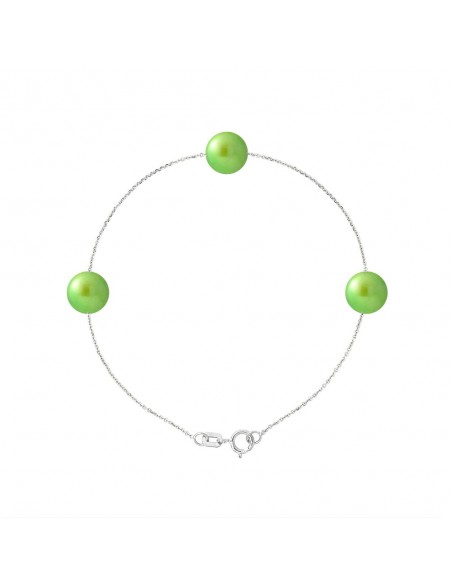 Bracelet 3 Véritables Perles de Culture d'Eau Douce- Diamètre 7-8 mm- Colori Vert Intense- Qualité de la Perle : AAA+- Chaîne For‡at / Longueur 18 cm Argent 925 Millièmes Rhodiée - Livré dans un écrin Prestige et accompagné d'un Certificat d'Authenticité et de Garantie- Fabriqué par nos Artisans Bijoutiers Français- Garanti 2 ans contre tout défaut de fabrication Internationale