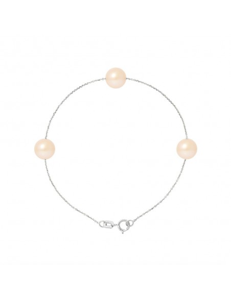 Bracelet 3 Véritables Perles de Culture d'Eau Douce- Diamètre 7-8 mm- Colori Rose Naturel- Qualité de la Perle : AAA+- Chaîne For‡at / Longueur 18 cm Argent 925 Millièmes Rhodiée - Livré dans un écrin Prestige et accompagné d'un Certificat d'Authenticité et de Garantie- Fabriqué par nos Artisans Bijoutiers Français- Garanti 2 ans contre tout défaut de fabrication Internationale