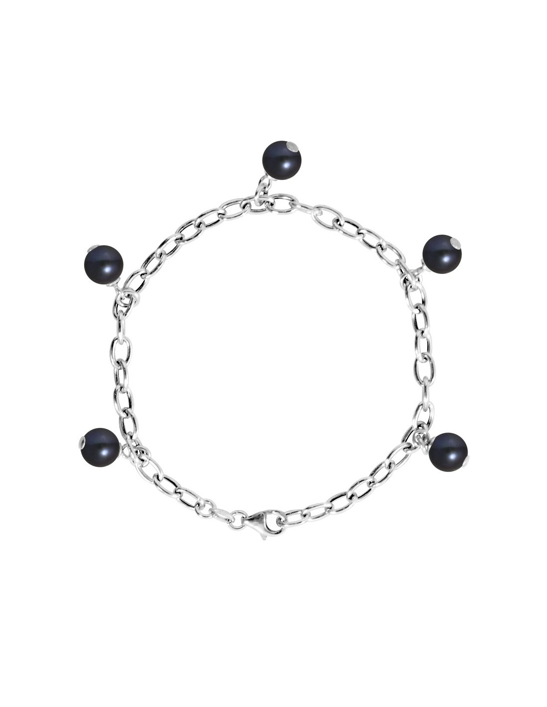 PERLINEA Collier CHARM'S 5 Véritables Perles de Culture d'Eau Douce Diamètre 78 mm Black Tahiti Bijou Femme Argent 925 MillŠm