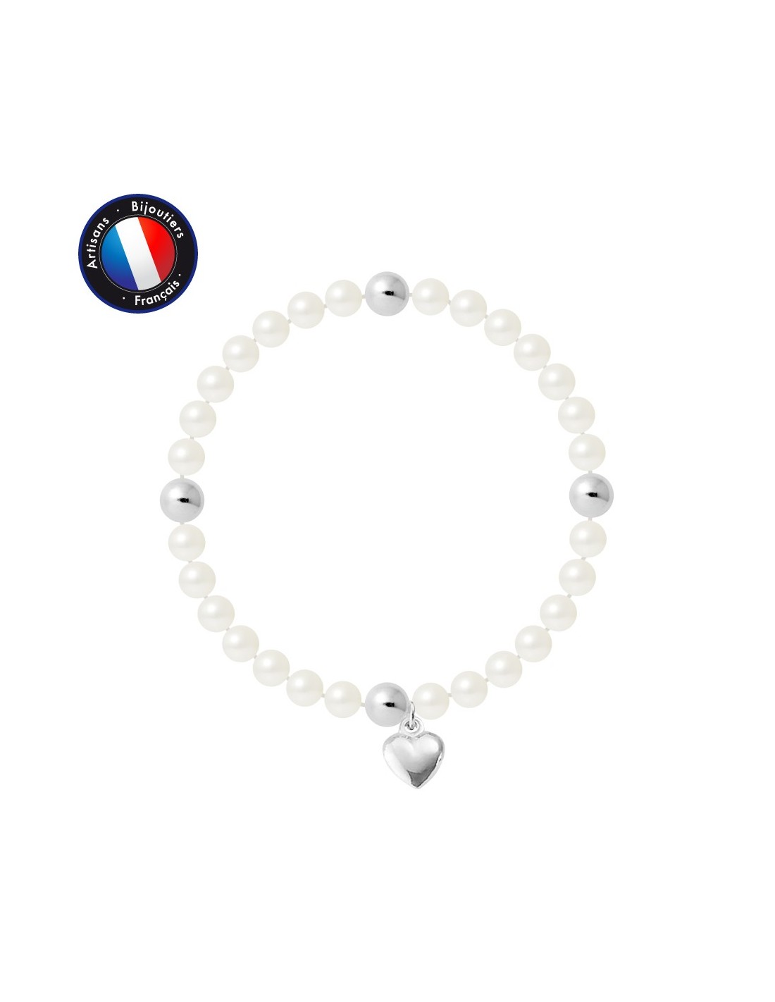 Bracelet- Véritables Perles de Culture d'Eau Douce- Colori Blanc Naturel- Diamètre 5-6 mm- Qualité de la Perle : AAA+- Breloque Coeur & 4 Viroles- Argent 925 Millièmes- lastiqu‚ / Longueur 18 cm- Livré dans un écrin Prestige et accompagné d'un Certificat d'Authenticité et de Garantie- Fabriqué par nos Artisans Bijoutiers Français- Garanti 2 ans contre tout défaut de fabrication Internationale