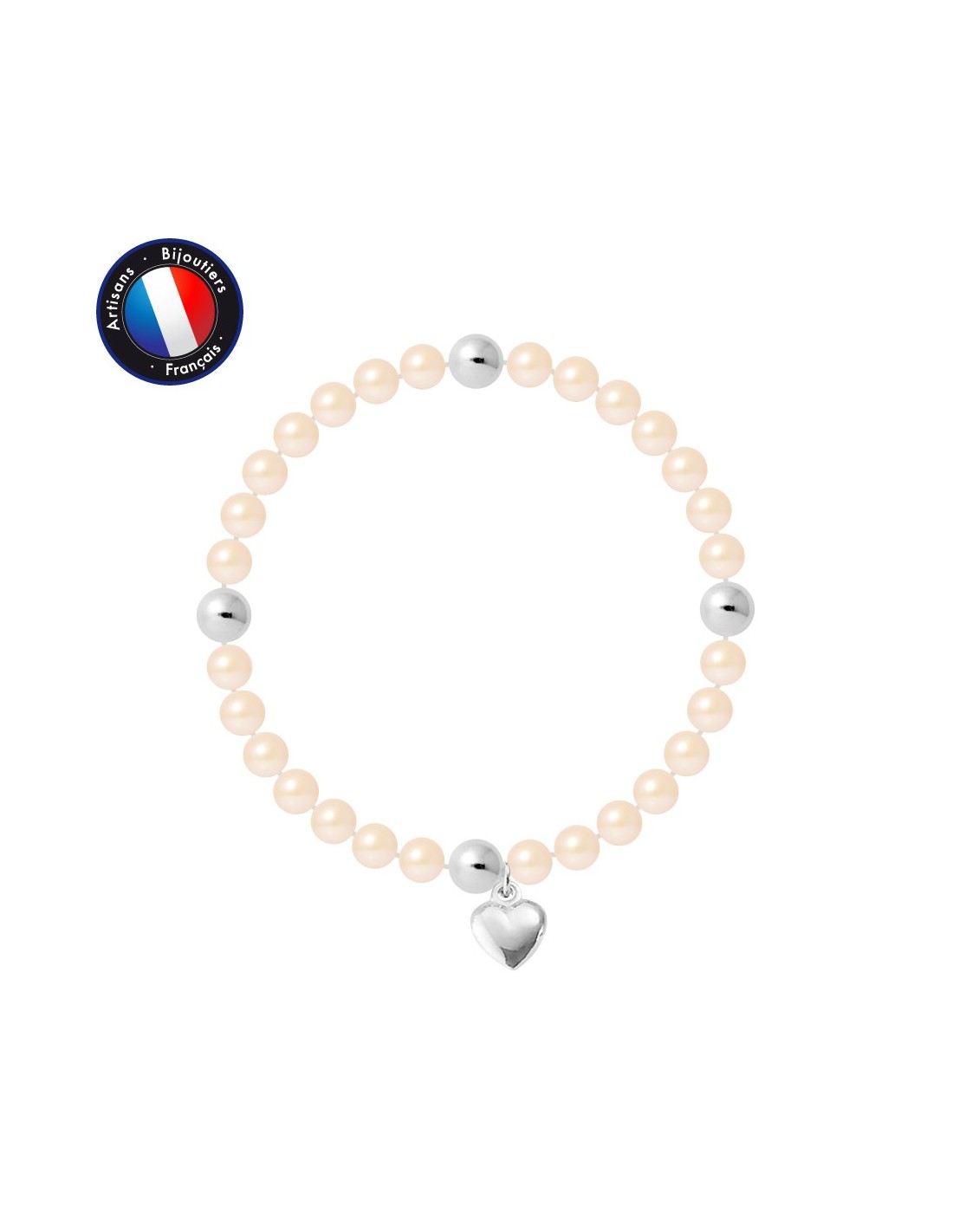 Bracelet- Véritables Perles de Culture d'Eau Douce- Colori Rose Naturel- Diamètre 5-6 mm- Qualité de la Perle : AAA+- Breloque Coeur & 4 Viroles- Argent 925 Millièmes- lastiqu‚ / Longueur 18 cm- Livré dans un écrin Prestige et accompagné d'un Certificat d'Authenticité et de Garantie- Fabriqué par nos Artisans Bijoutiers Français- Garanti 2 ans contre tout défaut de fabrication Internationale