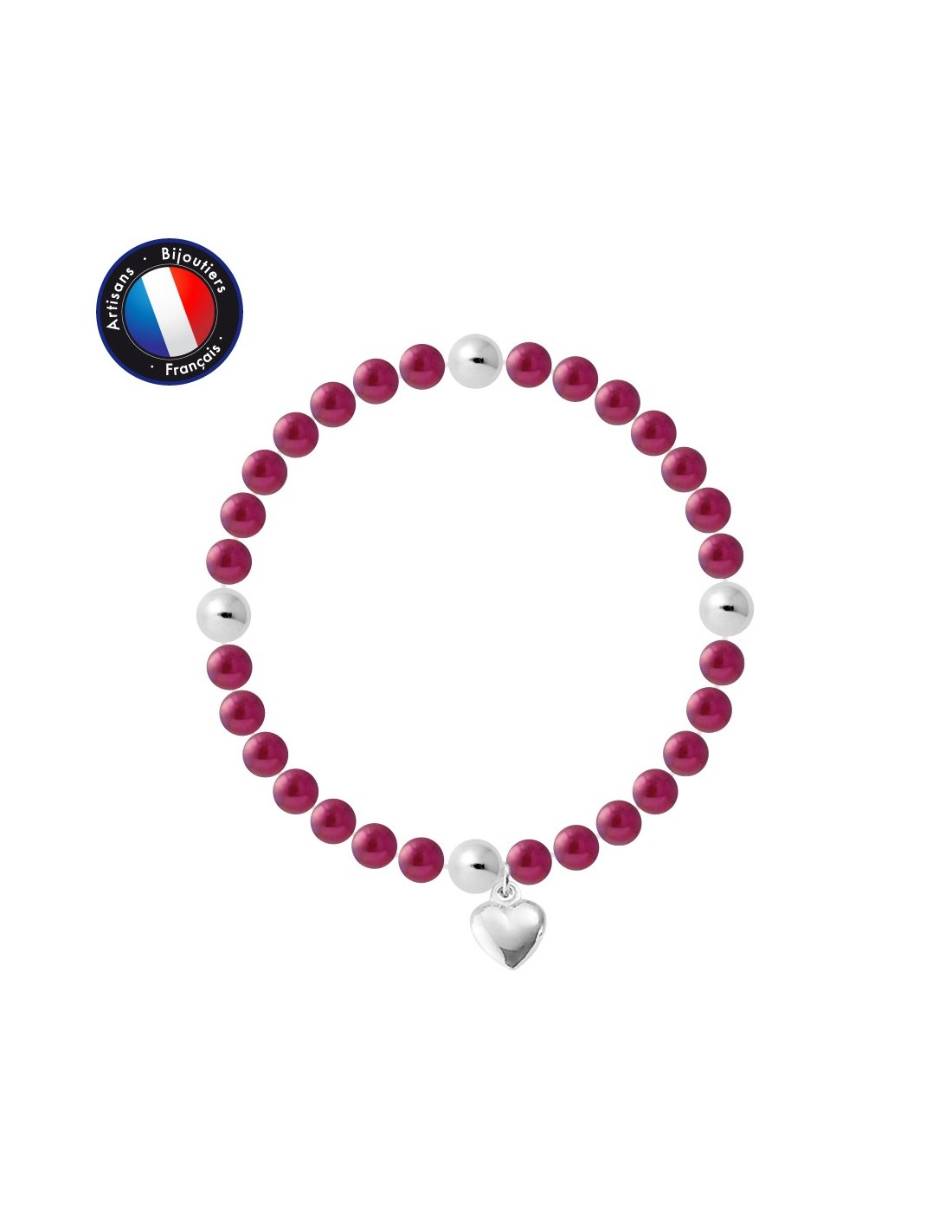 Bracelet- Véritables Perles de Culture d'Eau Douce- Colori Rouge Cerise- Diamètre 5-6 mm- Qualité de la Perle : AAA+- Breloque Coeur & 4 Viroles- Argent 925 Millièmes- lastiqu‚ / Longueur 18 cm- Livré dans un écrin Prestige et accompagné d'un Certificat d'Authenticité et de Garantie- Fabriqué par nos Artisans Bijoutiers Français- Garanti 2 ans contre tout défaut de fabrication Internationale