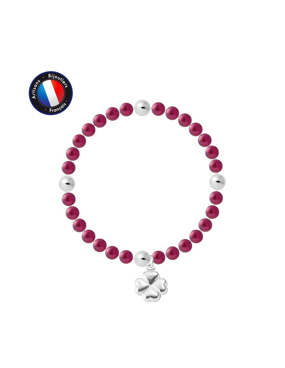 Bracelet- Véritables Perles de Culture d'Eau Douce- Colori Rouge Cerise- Diamètre 5-6 mm- Qualité de la Perle : AAA+- Breloque TrŠfle & 4 Viroles- Argent 925 Millièmes- lastiqu‚ / Longueur 18 cm- Livré dans un écrin Prestige et accompagné d'un Certificat d'Authenticité et de Garantie- Fabriqué par nos Artisans Bijoutiers Français- Garanti 2 ans contre tout défaut de fabrication Internationale