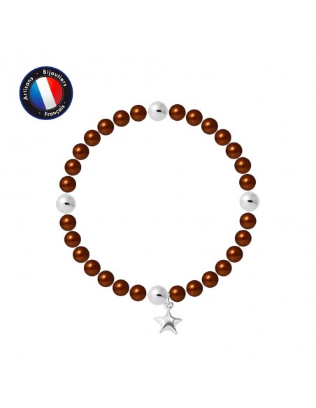 Bracelet- Véritables Perles de Culture d'Eau Douce- Colori Chocolat- Diamètre 5-6 mm- Qualité de la Perle : AAA+- Breloque toile & 4 Viroles- Argent 925 Millièmes- lastiqu‚ / Longueur 18 cm- Livré dans un écrin Prestige et accompagné d'un Certificat d'Authenticité et de Garantie- Fabriqué par nos Artisans Bijoutiers Français- Garanti 2 ans contre tout défaut de fabrication Internationale