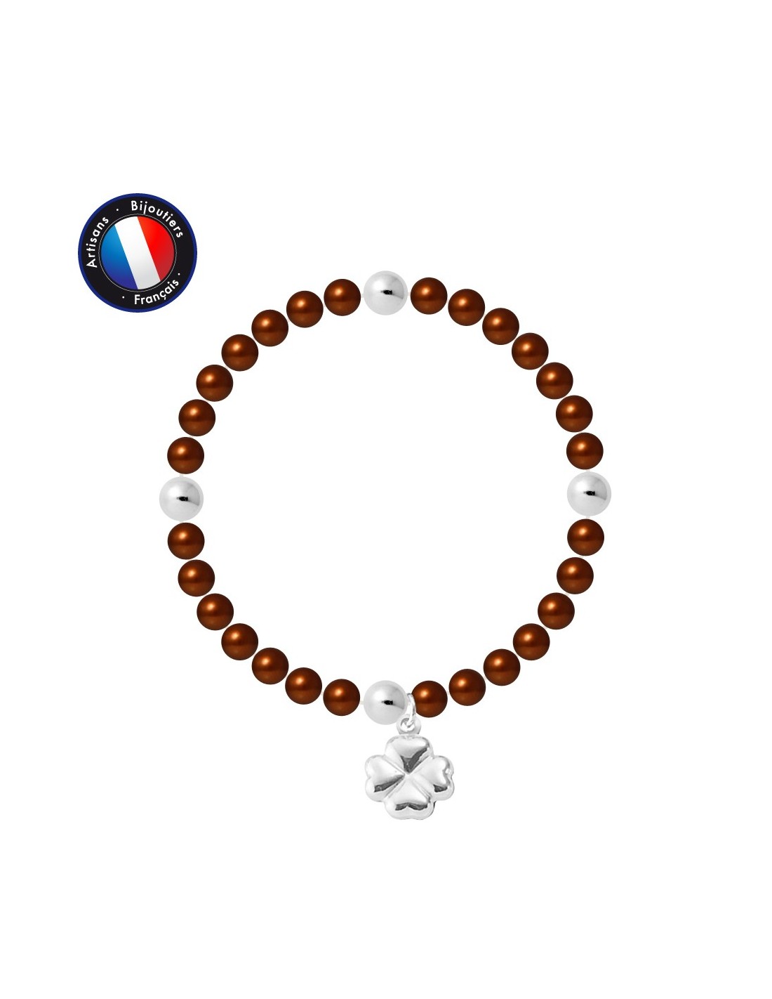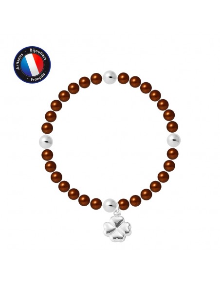 Bracelet- Véritables Perles de Culture d'Eau Douce- Colori Chocolat- Diamètre 5-6 mm- Qualité de la Perle : AAA+- Breloque TrŠfle & 4 Viroles- Argent 925 Millièmes- lastiqu‚ / Longueur 18 cm- Livré dans un écrin Prestige et accompagné d'un Certificat d'Authenticité et de Garantie- Fabriqué par nos Artisans Bijoutiers Français- Garanti 2 ans contre tout défaut de fabrication Internationale