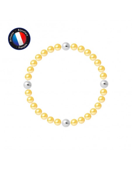 Bracelet- Véritables Perles de Culture d'Eau Douce- Colori Gold- Diamètre 5-6 mm- Qualité de la Perle : AAA+- 4 Viroles- Argent 925 Millièmes- lastiqu‚ / Longueur 18 cm- Livré dans un écrin Prestige et accompagné d'un Certificat d'Authenticité et de Garantie- Fabriqué par nos Artisans Bijoutiers Français- Garanti 2 ans contre tout défaut de fabrication Internationale