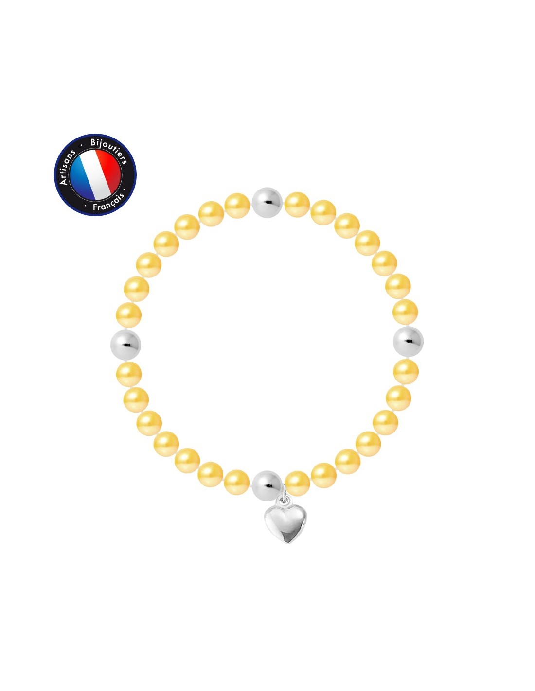 Bracelet- Véritables Perles de Culture d'Eau Douce- Colori Gold- Diamètre 5-6 mm- Qualité de la Perle : AAA+- Breloque Coeur & 4 Viroles- Argent 925 Millièmes- lastiqu‚ / Longueur 18 cm- Livré dans un écrin Prestige et accompagné d'un Certificat d'Authenticité et de Garantie- Fabriqué par nos Artisans Bijoutiers Français- Garanti 2 ans contre tout défaut de fabrication Internationale