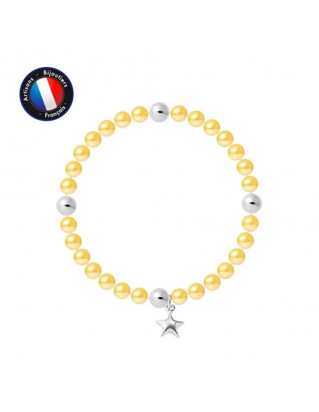 Bracelet- Véritables Perles de Culture d'Eau Douce- Colori Gold- Diamètre 5-6 mm- Qualité de la Perle : AAA+- Breloque toile & 4 Viroles- Argent 925 Millièmes- lastiqu‚ / Longueur 18 cm- Livré dans un écrin Prestige et accompagné d'un Certificat d'Authenticité et de Garantie- Fabriqué par nos Artisans Bijoutiers Français- Garanti 2 ans contre tout défaut de fabrication Internationale