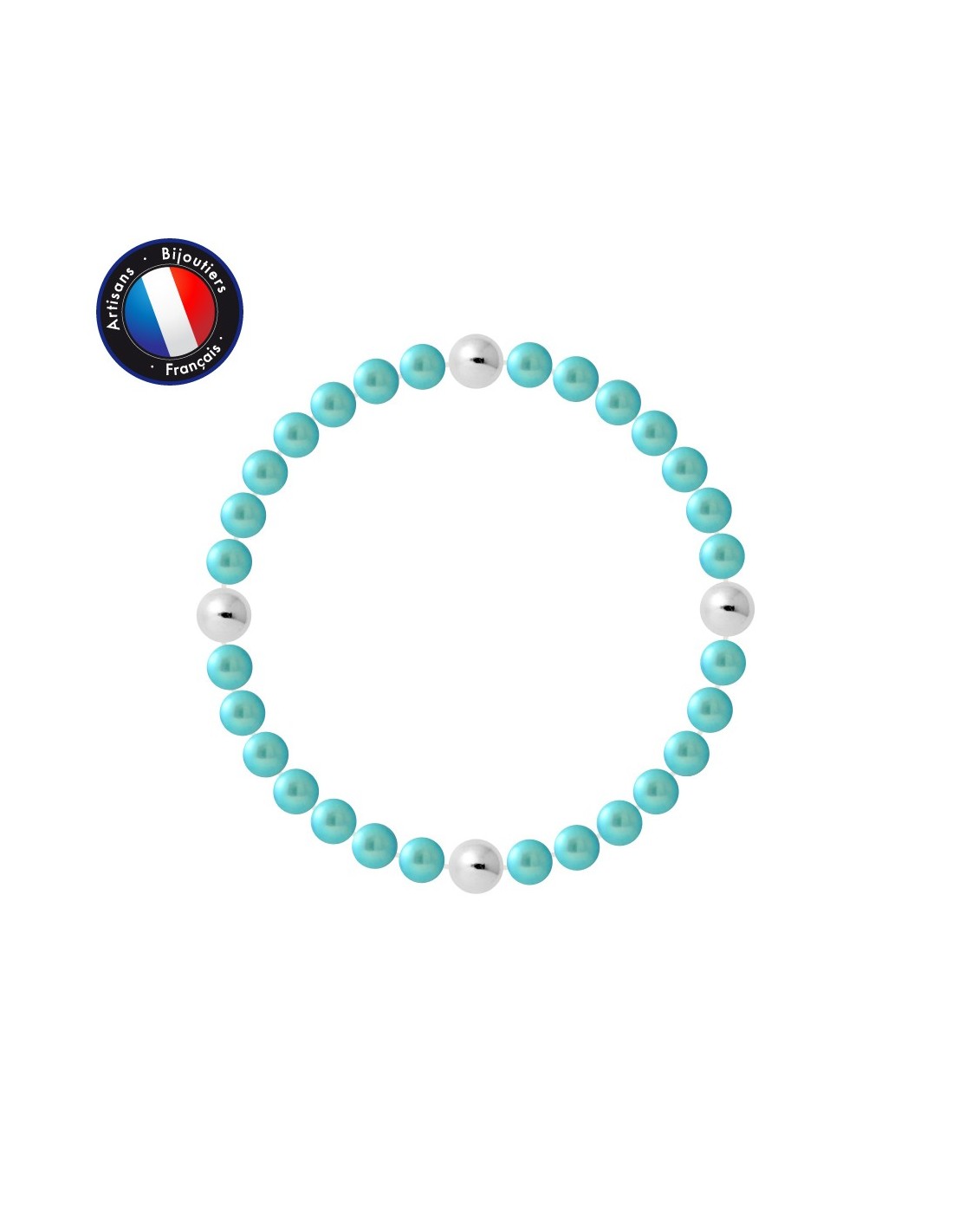 Bracelet- Véritables Perles de Culture d'Eau Douce- Colori Bleu Turquoise- Diamètre 5-6 mm- Qualité de la Perle : AAA+- 4 Viroles- Argent 925 Millièmes- lastiqu‚ / Longueur 18 cm- Livré dans un écrin Prestige et accompagné d'un Certificat d'Authenticité et de Garantie- Fabriqué par nos Artisans Bijoutiers Français- Garanti 2 ans contre tout défaut de fabrication Internationale