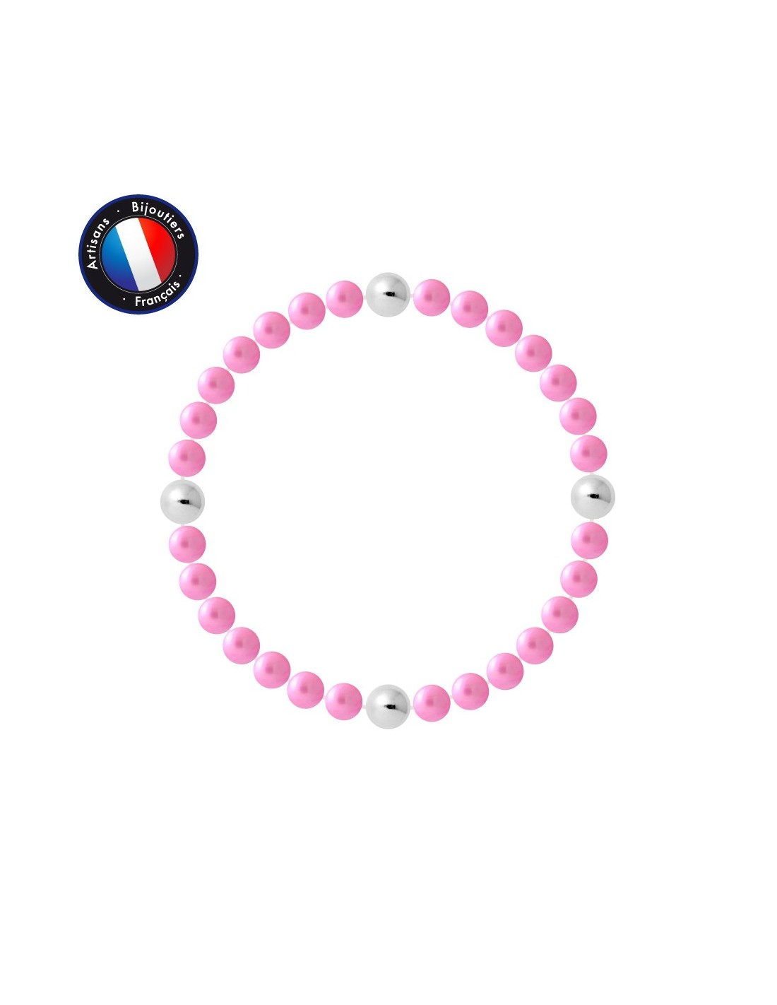 Bracelet- Véritables Perles de Culture d'Eau Douce- Colori Rose Fushia- Diamètre 5-6 mm- Qualité de la Perle : AAA+- 4 Viroles- Argent 925 Millièmes- lastiqu‚ / Longueur 18 cm- Livré dans un écrin Prestige et accompagné d'un Certificat d'Authenticité et de Garantie- Fabriqué par nos Artisans Bijoutiers Français- Garanti 2 ans contre tout défaut de fabrication Internationale
