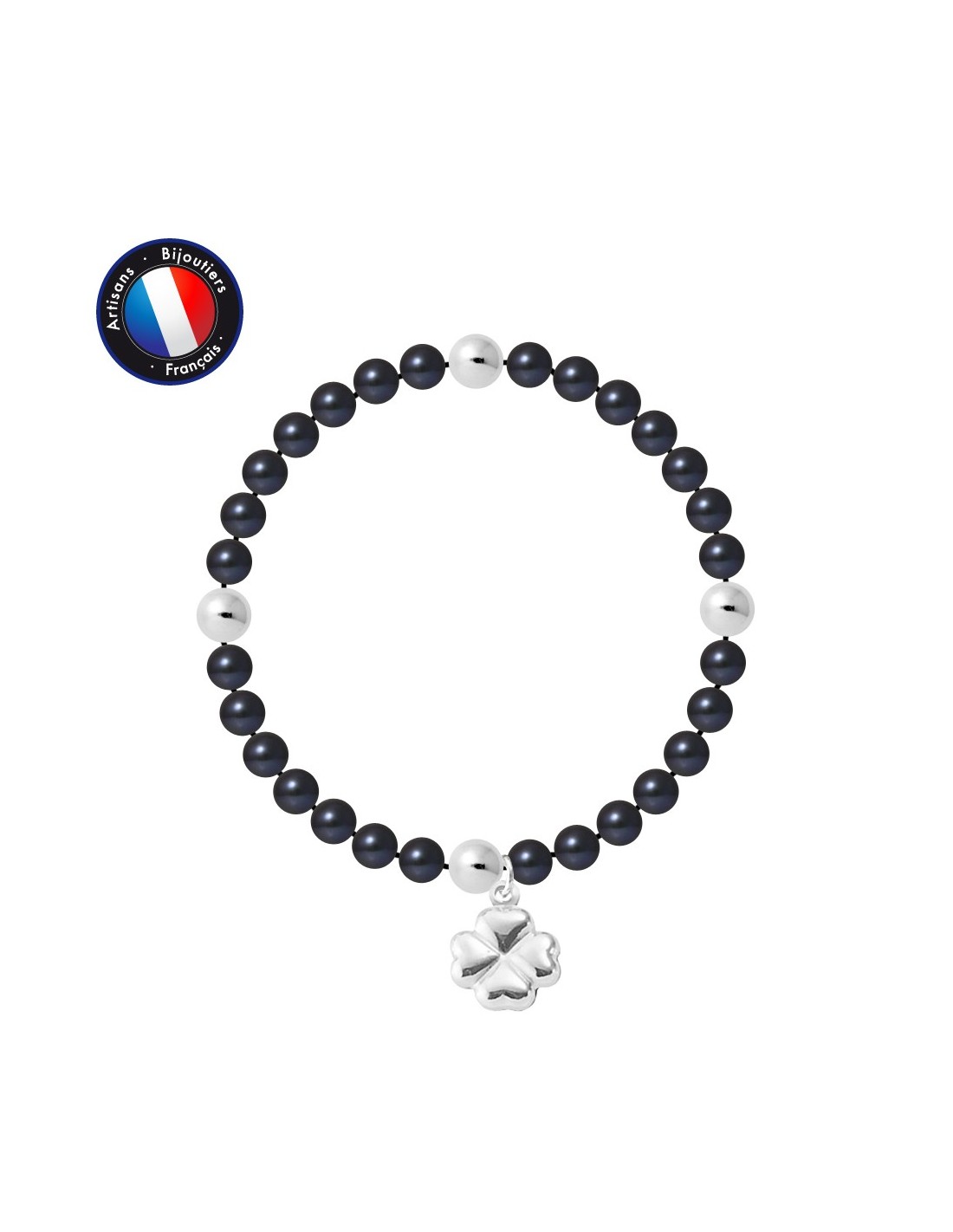Bracelet- Véritables Perles de Culture d'Eau Douce- Colori Black Tahiti- Diamètre 5-6 mm- Qualité de la Perle : AAA+- Breloque TrŠfle & 4 Viroles- Argent 925 Millièmes- lastiqu‚ / Longueur 18 cm- Livré dans un écrin Prestige et accompagné d'un Certificat d'Authenticité et de Garantie- Fabriqué par nos Artisans Bijoutiers Français- Garanti 2 ans contre tout défaut de fabrication Internationale