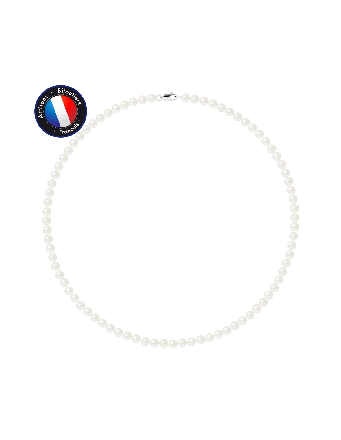 Collier- Véritables Perles de Culture d'Eau Douce- Colori Blanc Naturel- diamètre 5-6 mm- Qualité de la Perleÿ: AAA+- Mousqueton- Or Blanc 9 Cts - Livré dans un écrin Prestige et accompagné d'un Certificat d'Authenticité et de Garantie- Fabriqué par nos Artisans Bijoutiers Français- Garanti 2 ans contre tout défaut de fabrication Internationale