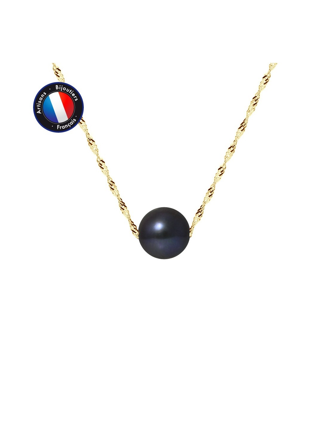 Collier- Véritables Perles de Culture d'Eau Douce- Colori Black Tahiti- diamètre 9-10 mm- Qualité de la Perleÿ: AAA+- OrJaune 9 Cts- Livré dans un écrin Prestige et accompagné d'un Certificat d'Authenticité et de Garantie- Fabriqué par nos Artisans Bijoutiers Français- Garanti 2 ans contre tout défaut de fabrication Internationale