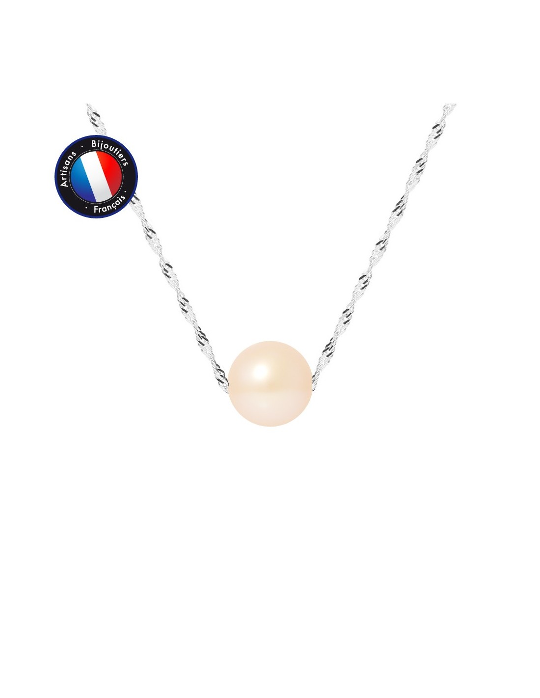 Collier- Véritables Perles de Culture d'Eau Douce- Colori Rose Naturel- diamètre 8-9 mm- Qualité de la Perleÿ: AAA+- Or Blanc 9 Cts- Livré dans un écrin Prestige et accompagné d'un Certificat d'Authenticité et de Garantie- Fabriqué par nos Artisans Bijoutiers Français- Garanti 2 ans contre tout défaut de fabrication Internationale