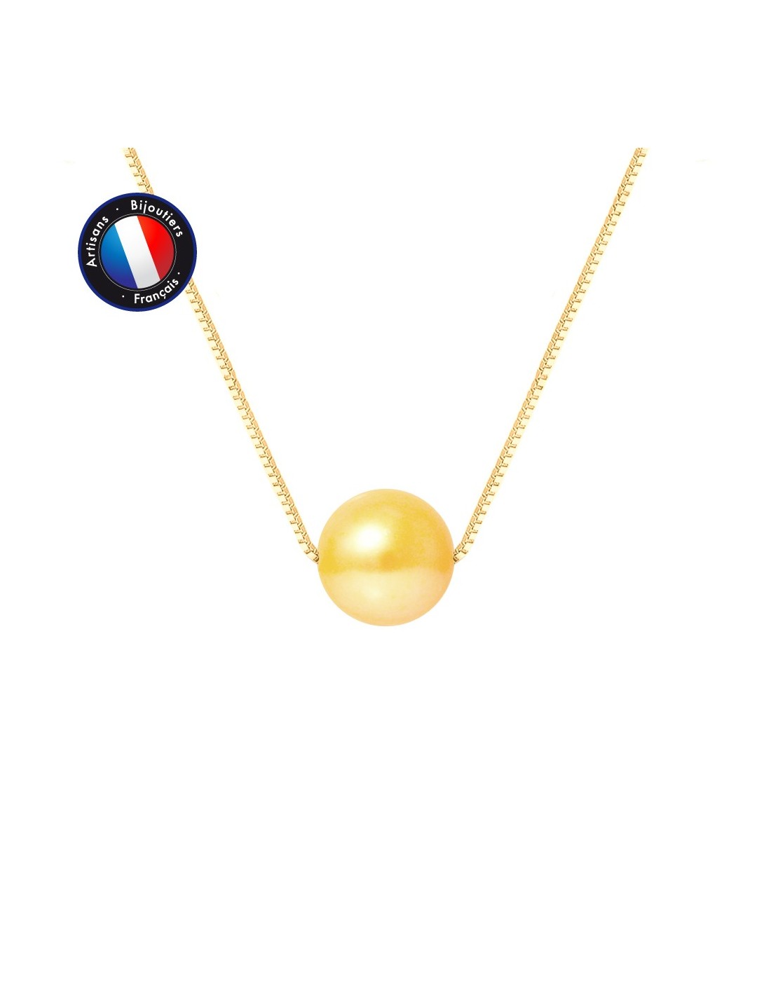 Collier- Véritables Perles de Culture d'Eau Douce- Colori Gold- - diamètre 9-10 mm- Qualité de la Perleÿ: AAA+- OrJaune 9 Cts- Livré dans un écrin Prestige et accompagné d'un Certificat d'Authenticité et de Garantie- Fabriqué par nos Artisans Bijoutiers Français- Garanti 2 ans contre tout défaut de fabrication Internationale