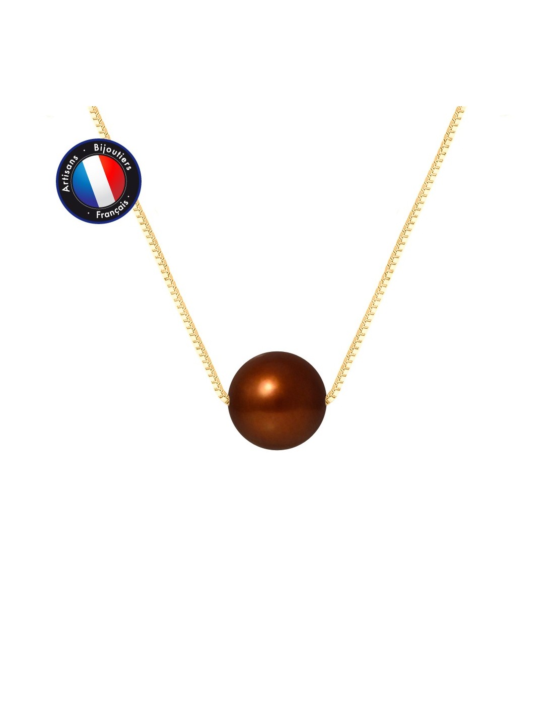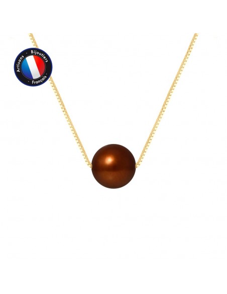 Collier- Véritables Perles de Culture d'Eau Douce- Colori Chocolat- - diamètre 9-10 mm- Qualité de la Perleÿ: AAA+- OrJaune 9 Cts- Livré dans un écrin Prestige et accompagné d'un Certificat d'Authenticité et de Garantie- Fabriqué par nos Artisans Bijoutiers Français- Garanti 2 ans contre tout défaut de fabrication Internationale