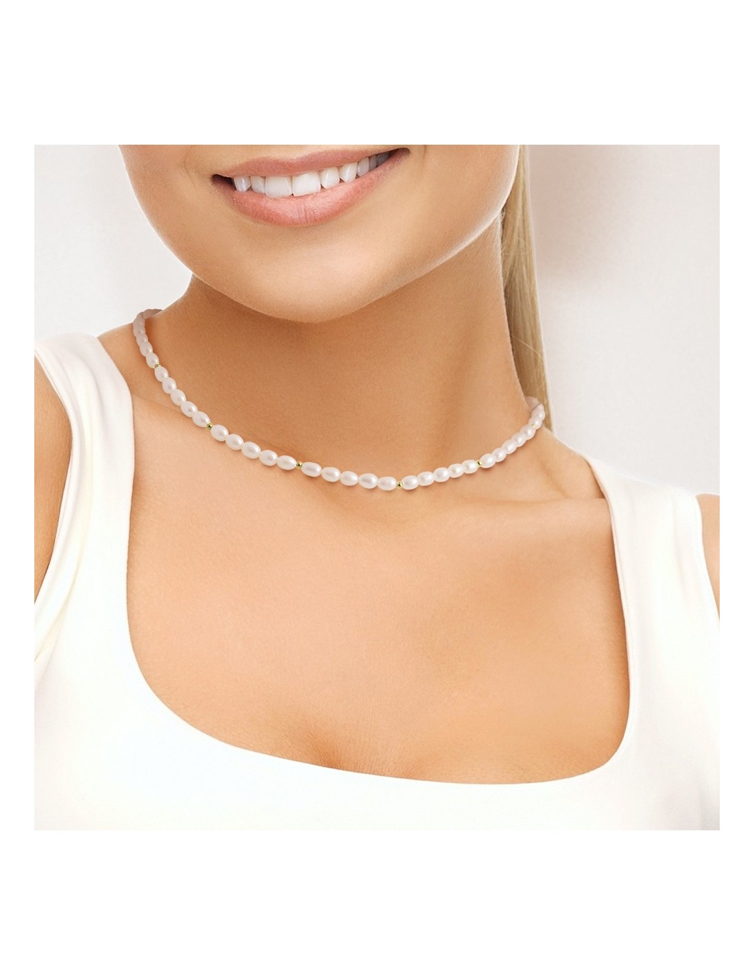 Collier- Véritables Perles de Culture d'Eau Douce- Colori Blanc Naturel- diamètre 4-5 mm- Qualité de la Perleÿ: AAA+- Fermoire Anneau Ressort- OrJaune 9 Cts - Livré dans un écrin Prestige et accompagné d'un Certificat d'Authenticité et de Garantie- Fabriqué par nos Artisans Bijoutiers Français- Garanti 2 ans contre tout défaut de fabrication Internationale