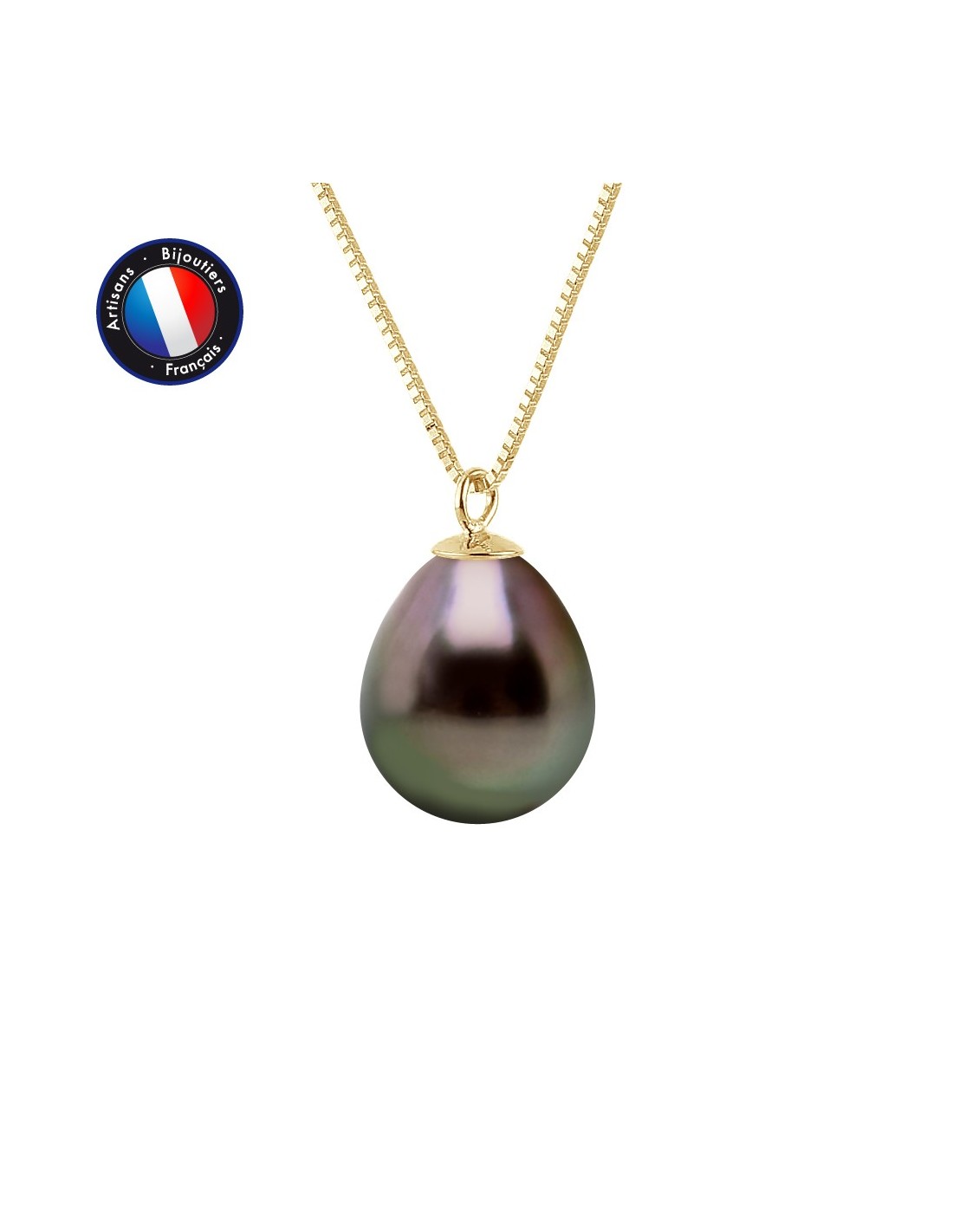 Collier- Véritables Perles de Culture de Tahiti- diamètre 9-10 mm- Qualité de la Perleÿ: AAA+-Jaune 9 Cts - Livré dans un écrin Prestige et accompagné d'un Certificat d'Authenticité et de Garantie- Fabriqué par nos Artisans Bijoutiers Français- Garanti 2 ans contre tout défaut de fabrication Internationale