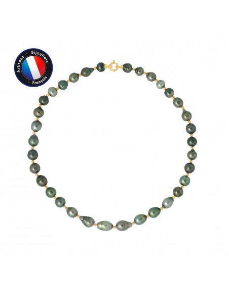 Collier- Véritables Perles de Culture de Tahiti- diamètre 7-8 mm- Qualité de la Perleÿ: AAA+-Fermoir Anneau Marin- OrJaune 9 Cts- Livré dans un écrin Prestige et accompagné d'un Certificat d'Authenticité et de Garantie- Fabriqué par nos Artisans Bijoutiers Français- Garanti 2 ans contre tout défaut de fabrication Internationale