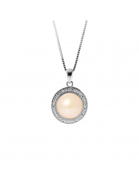 PERLINEA Collier Sun Perle de Culture d'Eau Douce Diamètre 910 mm Rose Bijou Femme Argent 925 Millièmes