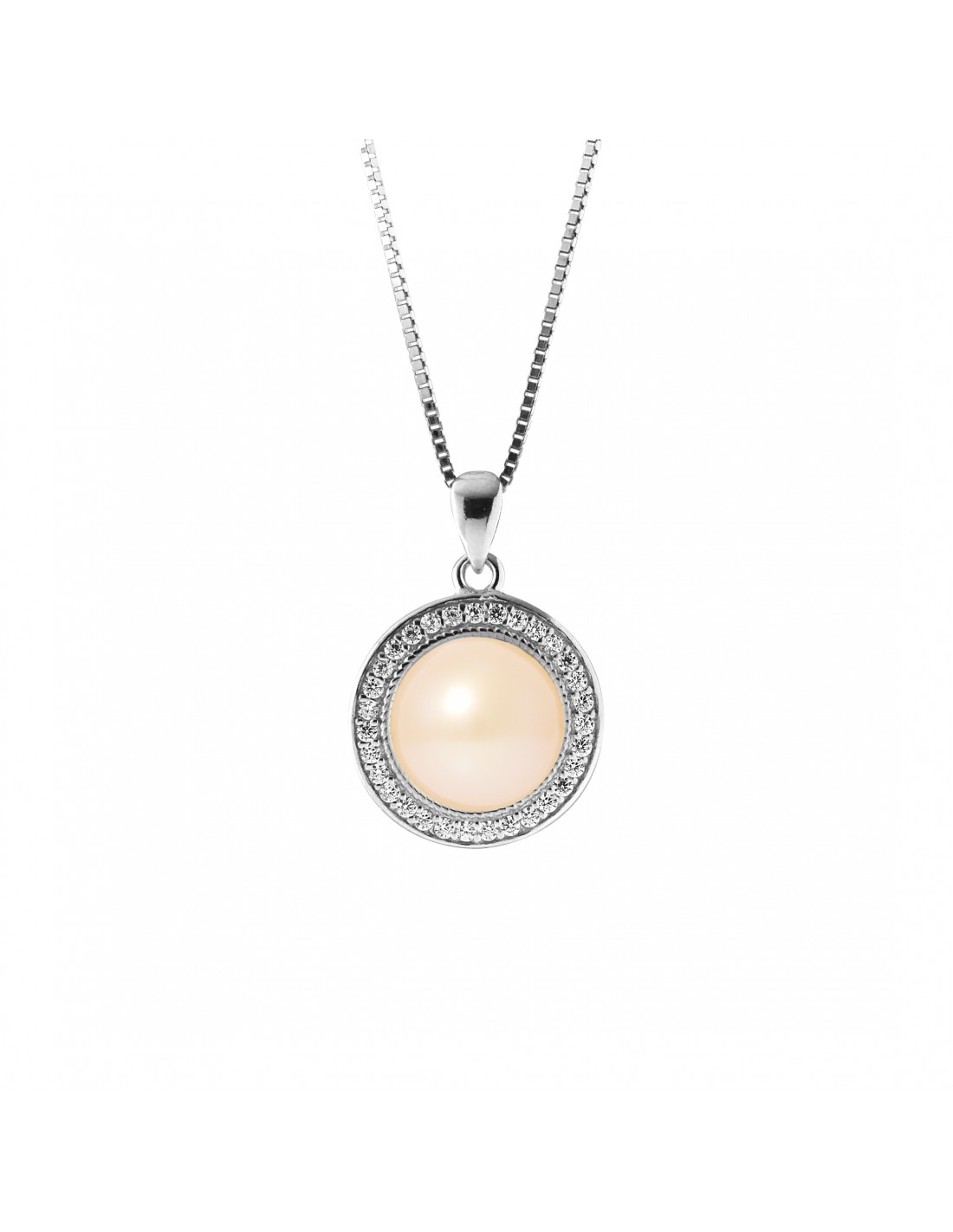 Collier Sun- Véritable Perle de Culture d'Eau Douce- Diamètre 9-10 mm- Colori Blanc Naturel- Qualité de la Perle : AAA+- Entourage Oxydes de Zirconium- Chaîne Vénitienne / Longueur 42 cm - Argent 925 Millièmes Rhodié- Livré dans un écrin Prestige et accompagné d'un Certificat d'Authenticité et de Garantie- Fabriqué par nos Artisans Bijoutiers Français- Garanti 2 ans contre tout défaut de fabrication Internationale