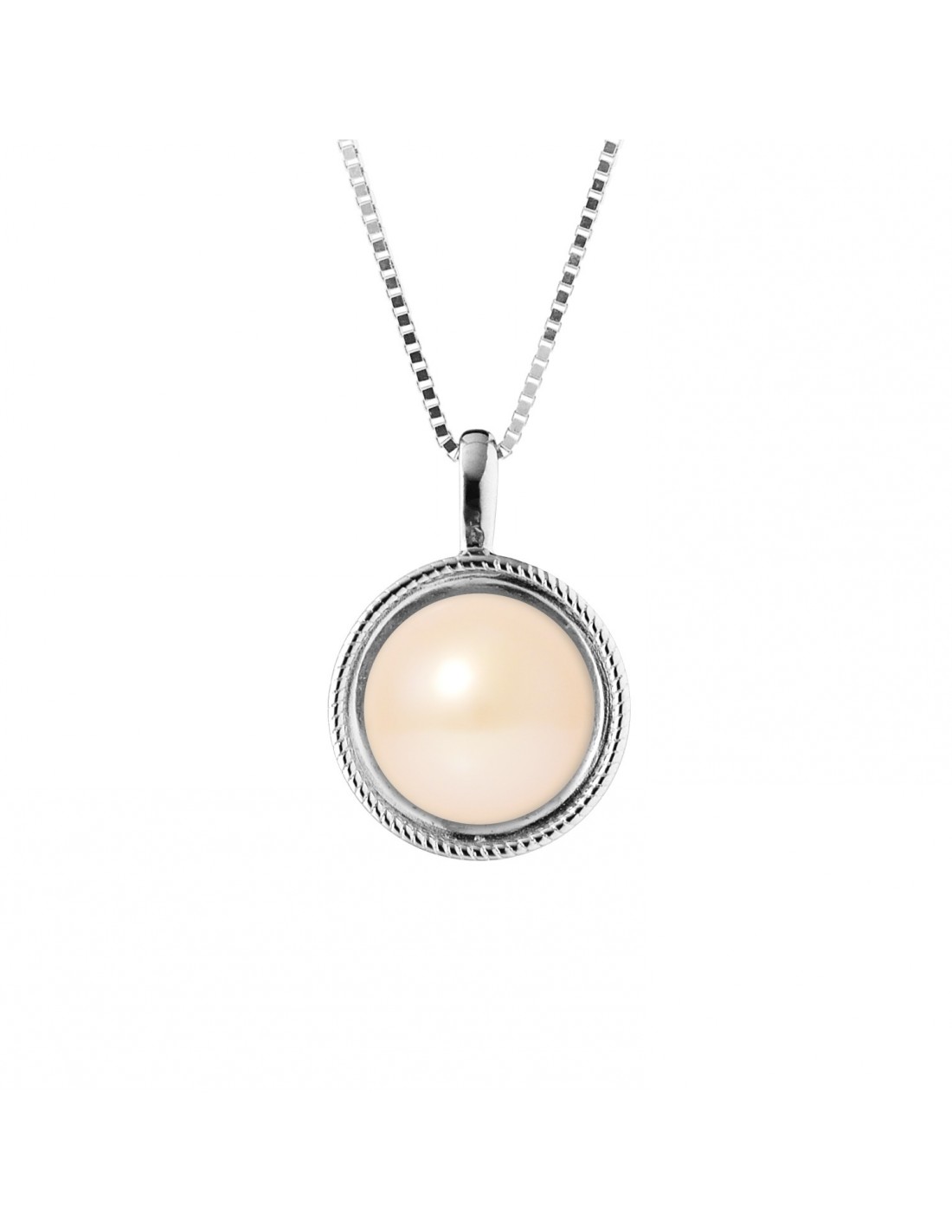 Collier Simple- Véritable Perle de Culture d'Eau Douce- Diamètre 9-10 mm- Colori Rose Naturel- Qualité de la Perle : AAA+- Chaîne Vénitienne / Longueur 42 cm - Argent 925 Millièmes Rhodié- Livré dans un écrin Prestige et accompagné d'un Certificat d'Authenticité et de Garantie- Fabriqué par nos Artisans Bijoutiers Français- Garanti 2 ans contre tout défaut de fabrication Internationale