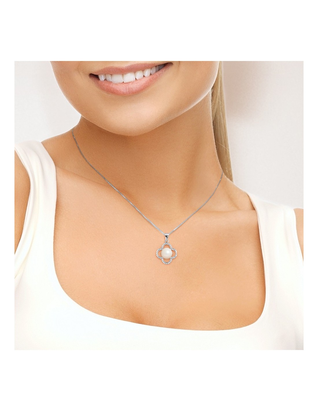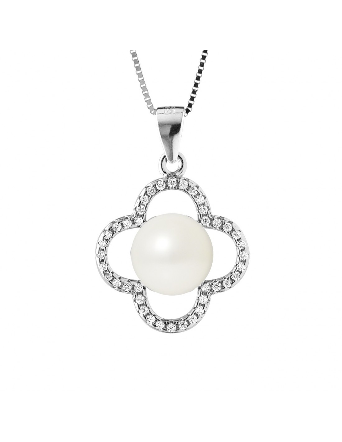 Collier TrŠfle- Véritable Perle de Culture d'Eau Douce- Diamètre 9-10 mm- Colori Blanc Naturel- Qualité de la Perle : AAA+- Entourage Oxydes de Zirconium- Chaîne Vénitienne / Longueur 42 cm - Argent 925 Millièmes Rhodié- Livré dans un écrin Prestige et accompagné d'un Certificat d'Authenticité et de Garantie- Fabriqué par nos Artisans Bijoutiers Français- Garanti 2 ans contre tout défaut de fabrication Internationale