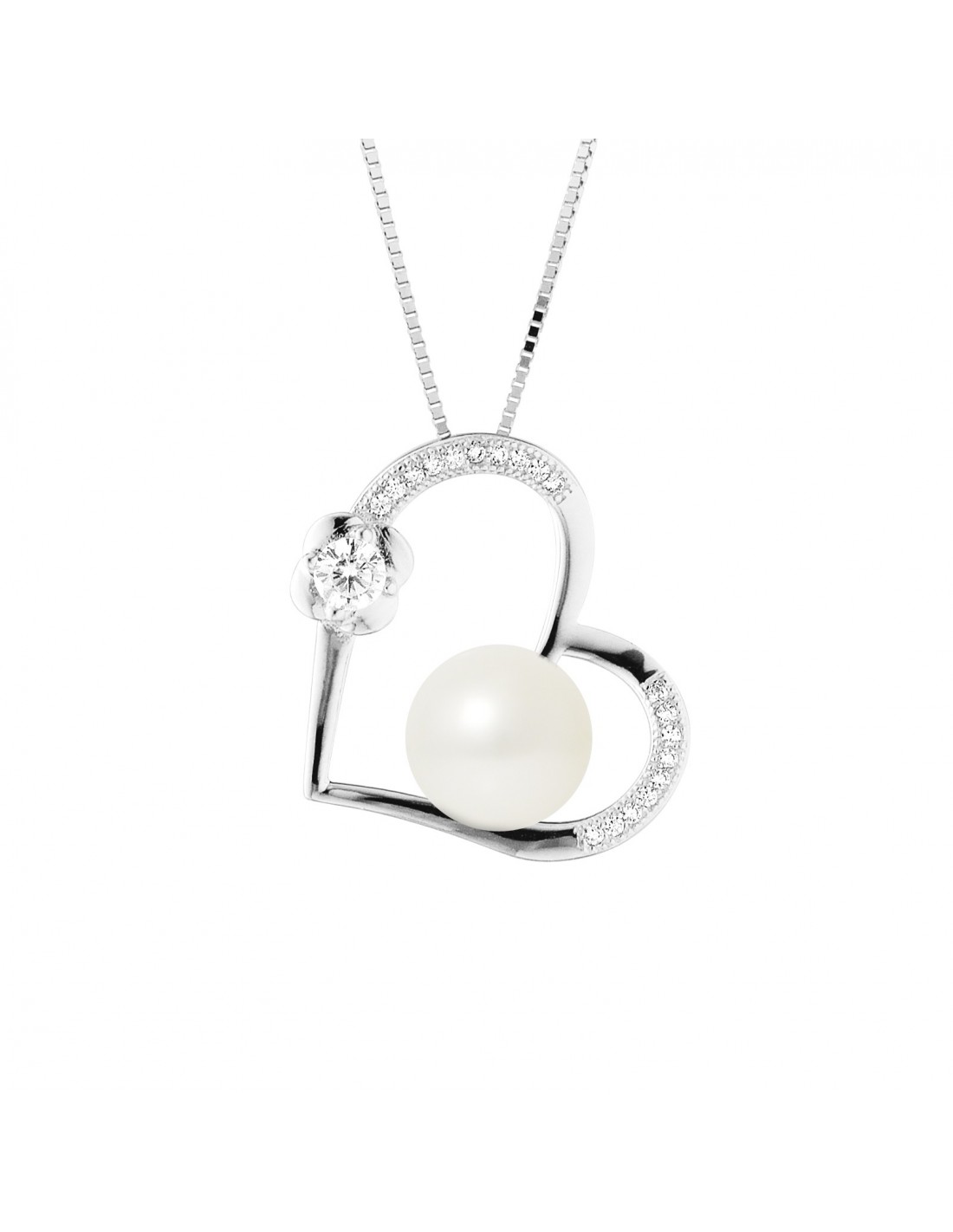 Collier Love- Véritable Perle de Culture d'Eau Douce- Diamètre 9-10 mm- Colori Blanc Naturel- Qualité de la Perle : AAA+- Oxyde de Zirconium- Chaîne Vénitienne / Longueur 42 cm- Argent 925 Millièmes Rhodié- Livré dans un écrin Prestige et accompagné d'un Certificat d'Authenticité et de Garantie- Fabriqué par nos Artisans Bijoutiers Français- Garanti 2 ans contre tout défaut de fabrication Internationale