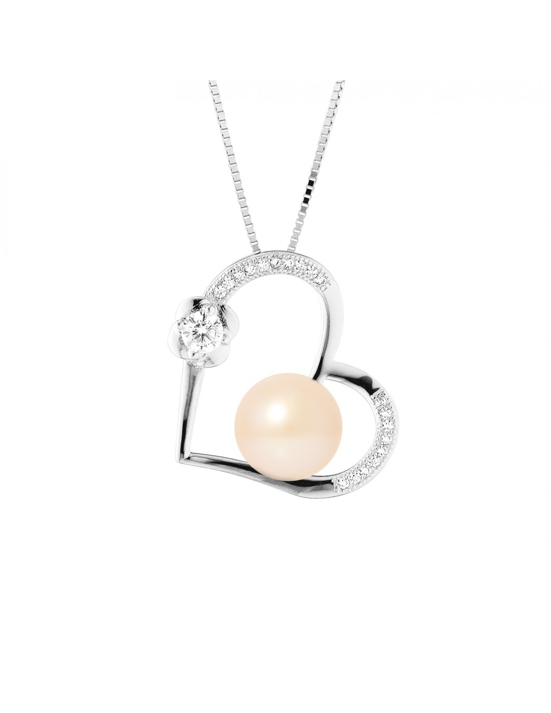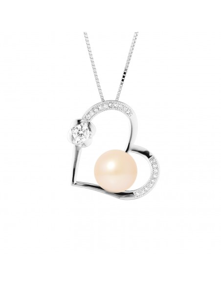 Collier Love- Véritable Perle de Culture d'Eau Douce- Diamètre 9-10 mm- Colori Rose Naturel- Qualité de la Perle : AAA+- Oxyde de Zirconium- Chaîne Vénitienne / Longueur 42 cm- Argent 925 Millièmes Rhodié- Livré dans un écrin Prestige et accompagné d'un Certificat d'Authenticité et de Garantie- Fabriqué par nos Artisans Bijoutiers Français- Garanti 2 ans contre tout défaut de fabrication Internationale