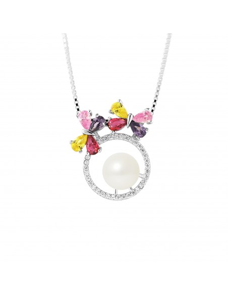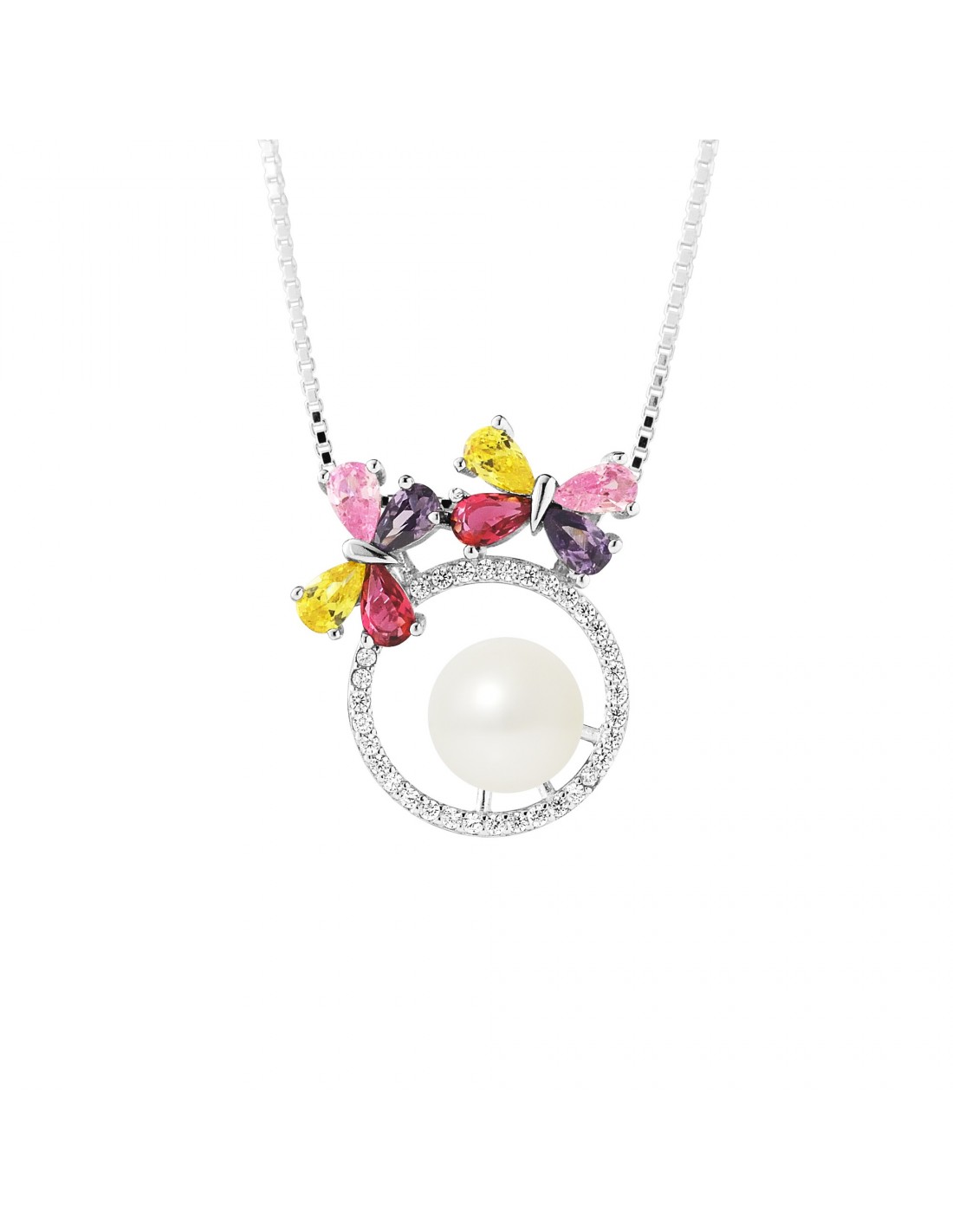 Collier Flowers- Véritable Perle de Culture d'Eau Douce- Diamètre 9-10 mm- Colori Blanc Naturel- Qualité de la Perle : AAA+- Entourage Oxydes de Zirconium Color‚s - Chaîne Vénitienne / Longueur 42 cm - Argent 925 Millièmes Rhodié- Livré dans un écrin Prestige et accompagné d'un Certificat d'Authenticité et de Garantie- Fabriqué par nos Artisans Bijoutiers Français- Garanti 2 ans contre tout défaut de fabrication Internationale