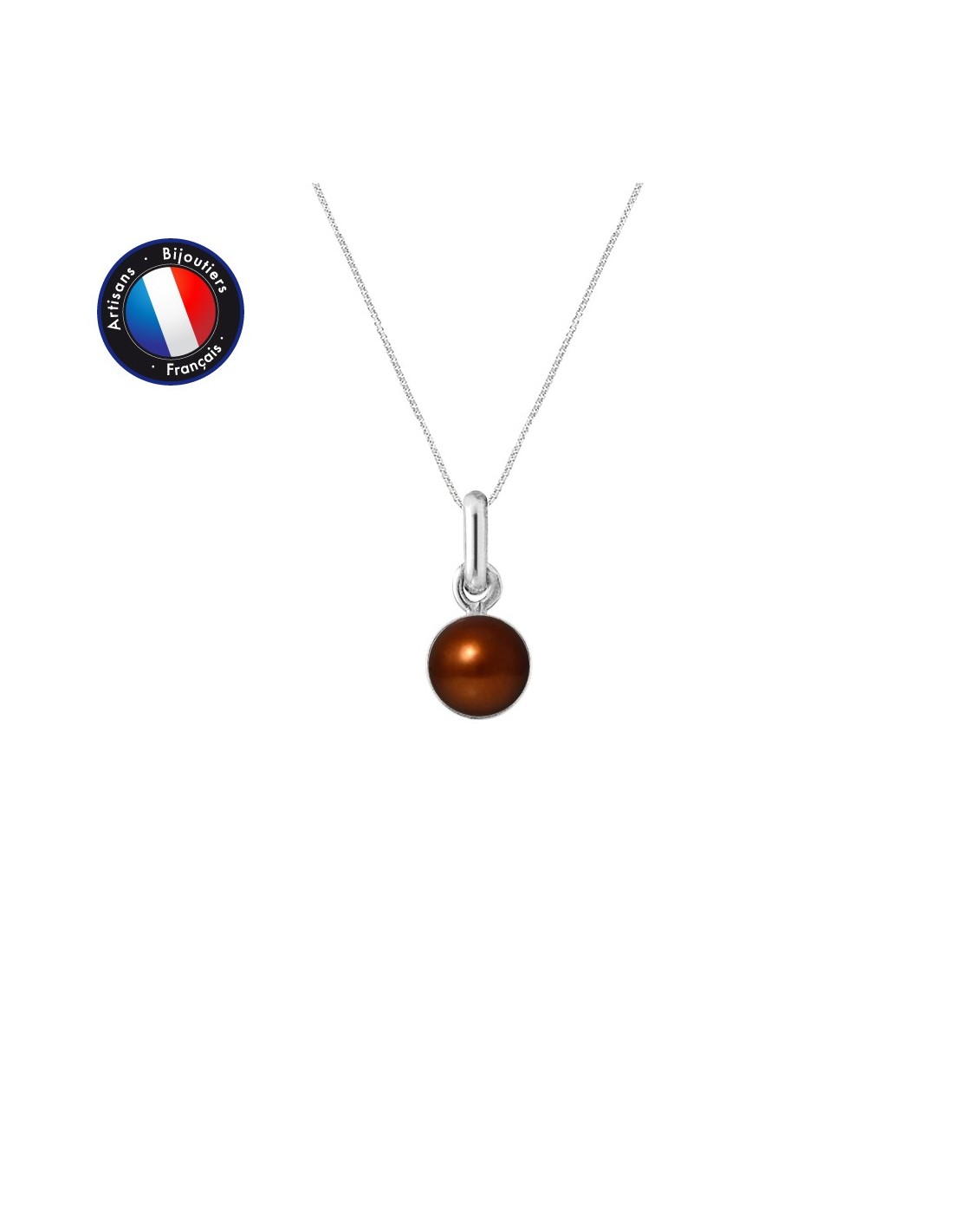 Pendentif- Véritable Perle de Culture d'Eau Douce- Diamètre 6-7 mm- Colori Chocolat- Qualité de la Perle : AAA+- Chaîne For‡at Offerte / Longueur 42 cm- Or Blanc 9 Cts- Livré dans un écrin Prestige et accompagné d'un Certificat d'Authenticité et de Garantie- Fabriqué par nos Artisans Bijoutiers Français- Garanti 2 ans contre tout défaut de fabrication Internationale