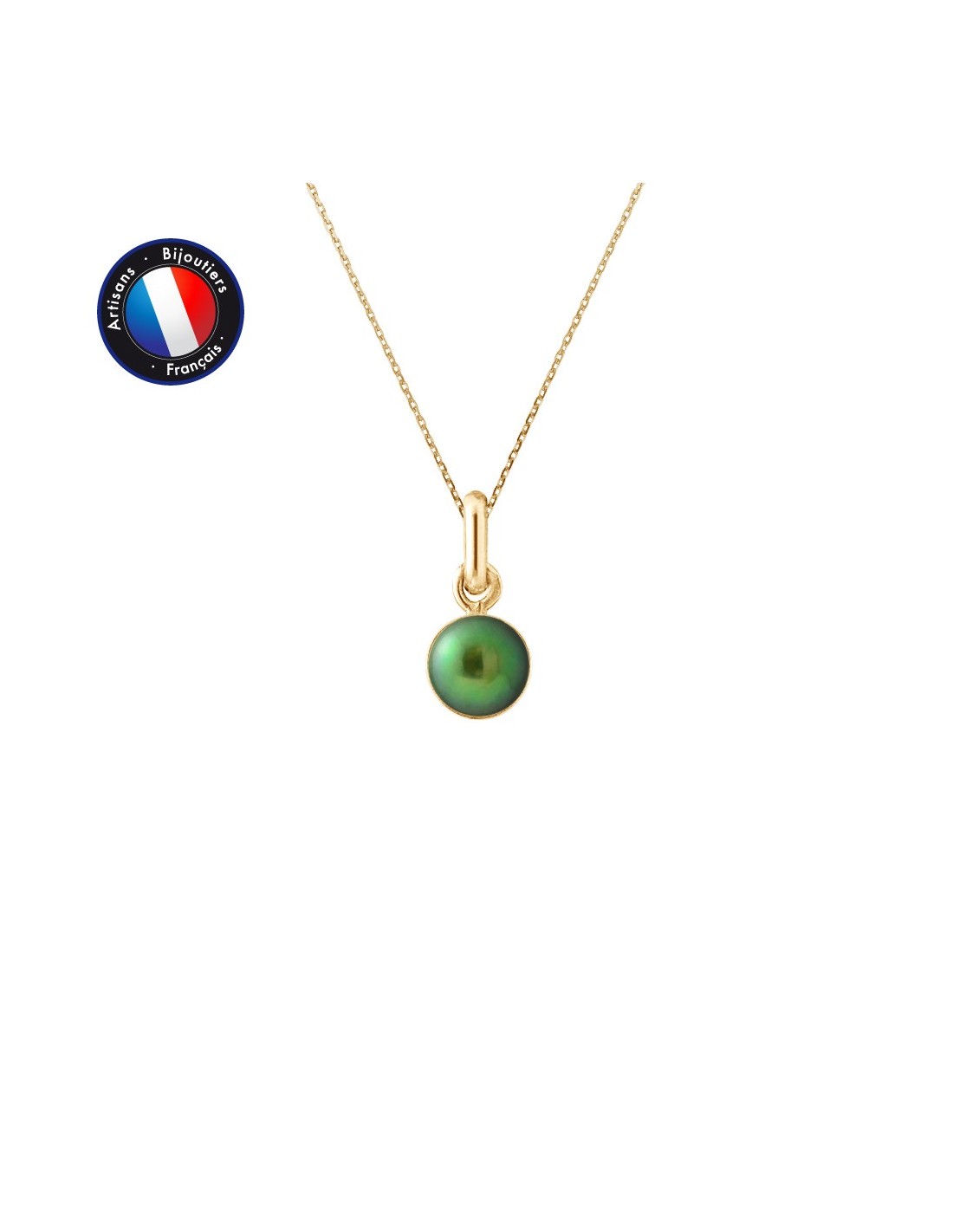 Pendentif- Véritable Perle de Culture d'Eau Douce- Diamètre 6-7 mm- Colori Vert Intense- Qualité de la Perle : AAA+- Chaîne For‡at Offerte / Longueur 42 cm- OrJaune 9 Cts- Livré dans un écrin Prestige et accompagné d'un Certificat d'Authenticité et de Garantie- Fabriqué par nos Artisans Bijoutiers Français- Garanti 2 ans contre tout défaut de fabrication Internationale