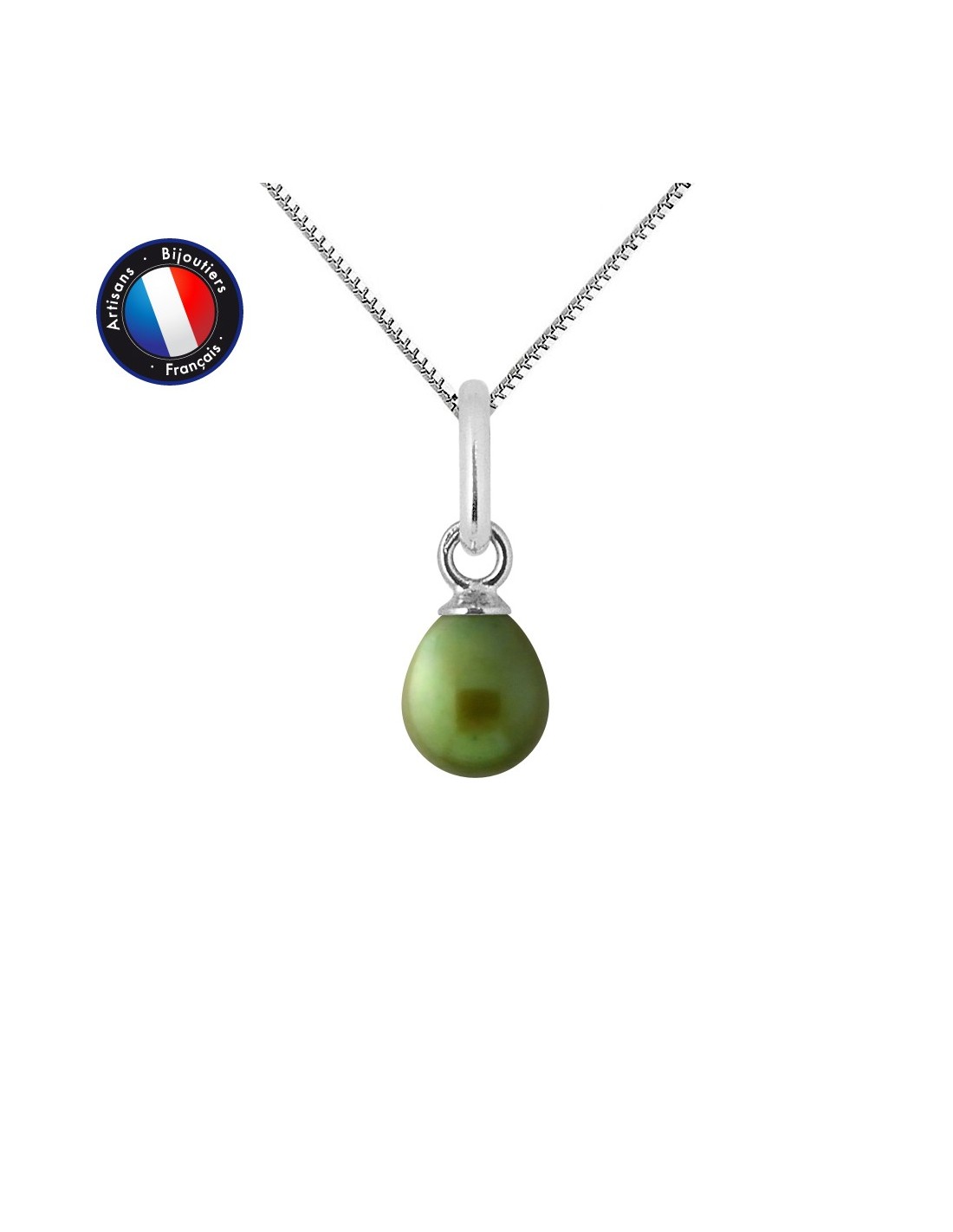 Pendentif- Véritable Perle de Culture d'Eau Douce- Diamètre 5-6 mm- Colori Vert Intense- Qualité de la Perle : AAA+- Chaîne For‡at Offerte / Longueur 42 cm- Or Blanc 9 Cts- Livré dans un écrin Prestige et accompagné d'un Certificat d'Authenticité et de Garantie- Fabriqué par nos Artisans Bijoutiers Français- Garanti 2 ans contre tout défaut de fabrication Internationale