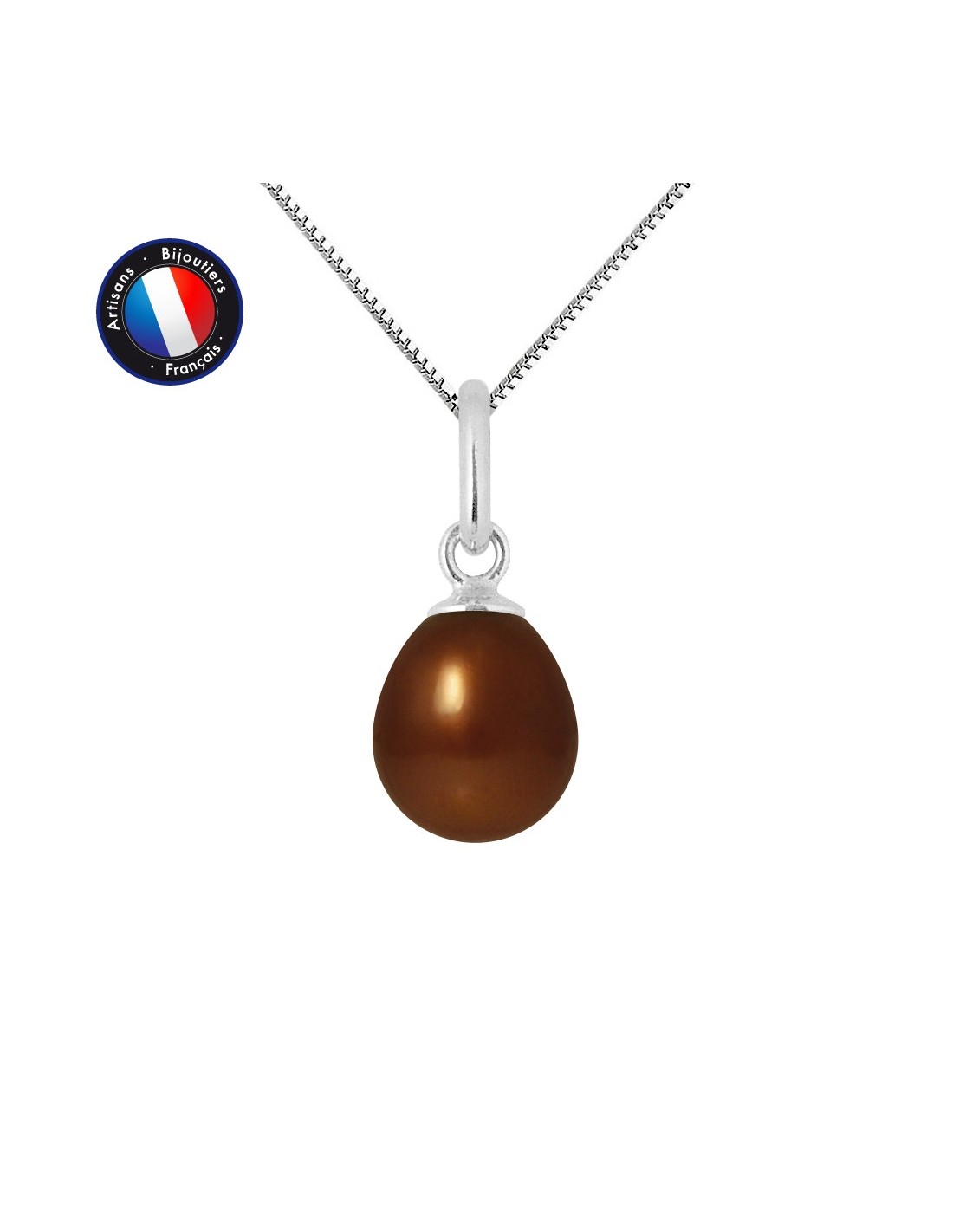 Pendentif- Véritable Perle de Culture d'Eau Douce- Diamètre 7-8 mm- Colori Chocolat- Qualité de la Perle : AAA+- Chaîne For‡at Offerte / Longueur 42 cm- Or Blanc 9 Cts- Livré dans un écrin Prestige et accompagné d'un Certificat d'Authenticité et de Garantie- Fabriqué par nos Artisans Bijoutiers Français- Garanti 2 ans contre tout défaut de fabrication Internationale