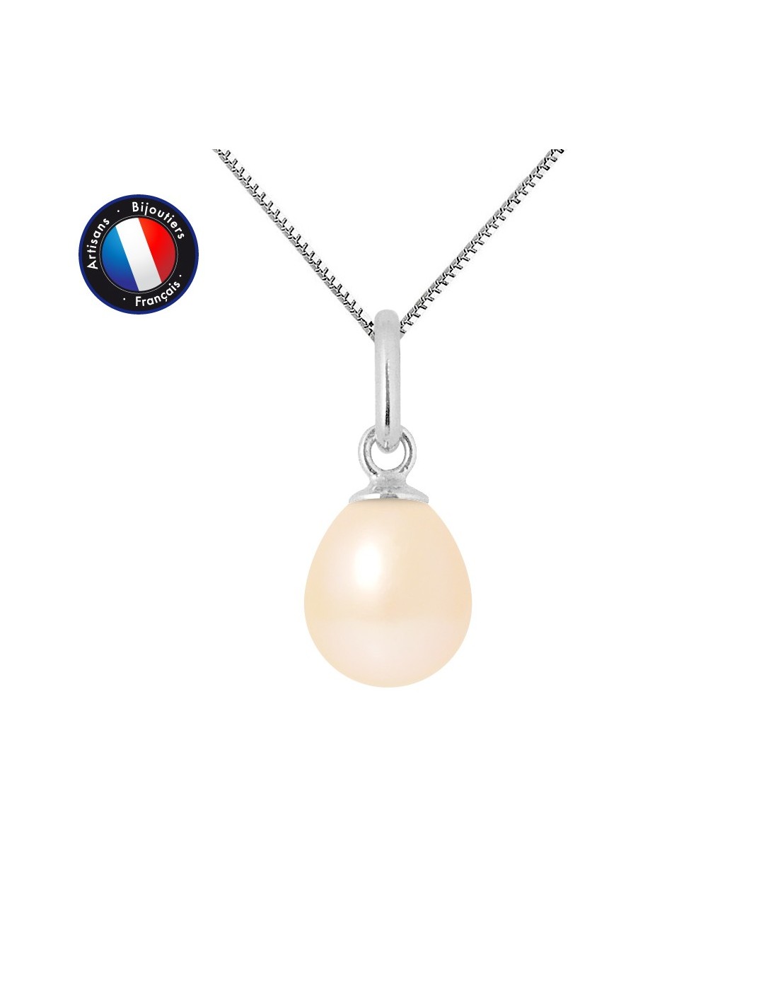 Pendentif- Véritable Perle de Culture d'Eau Douce- Diamètre 7-8 mm- Colori Rose Naturel- Qualité de la Perle : AAA+- Chaîne For‡at Offerte / Longueur 42 cm- Or Blanc 9 Cts- Livré dans un écrin Prestige et accompagné d'un Certificat d'Authenticité et de Garantie- Fabriqué par nos Artisans Bijoutiers Français- Garanti 2 ans contre tout défaut de fabrication Internationale