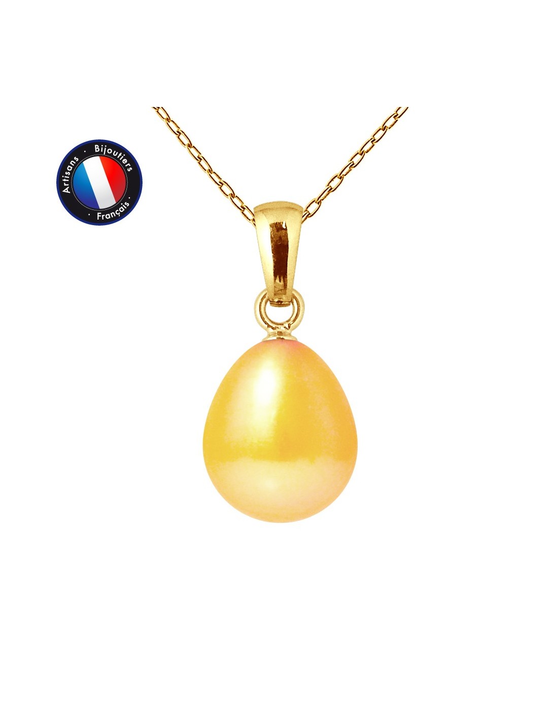Pendentif- Véritable Perle de Culture d'Eau Douce- Diamètre 9-10 mm- Colori Gold- Qualité de la Perle : AAA+- Chaîne For‡at Offerte / Longueur 42 cm- OrJaune 9 Cts- Livré dans un écrin Prestige et accompagné d'un Certificat d'Authenticité et de Garantie- Fabriqué par nos Artisans Bijoutiers Français- Garanti 2 ans contre tout défaut de fabrication Internationale