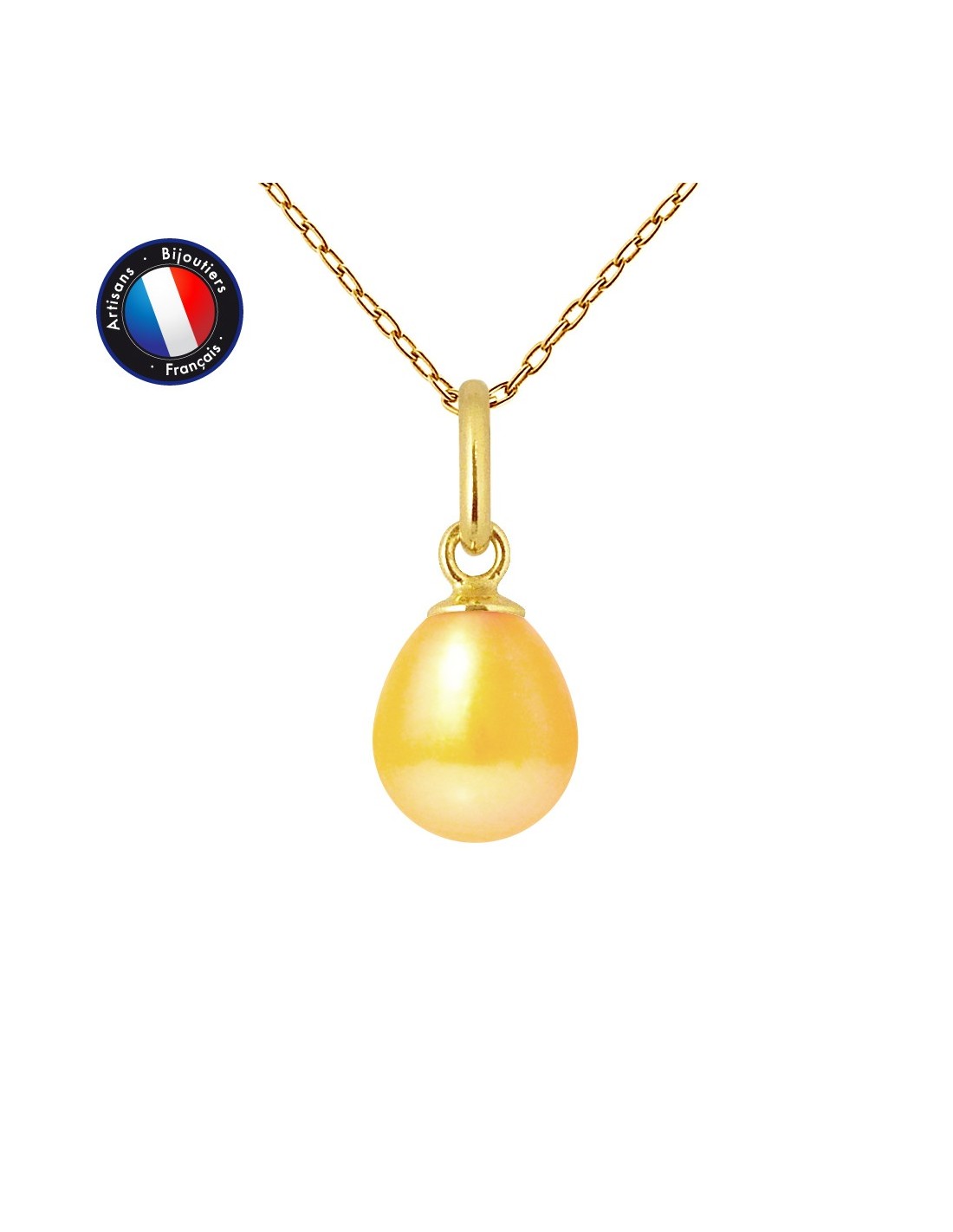 Pendentif- Véritable Perle de Culture d'Eau Douce- Diamètre 7-8 mm- Colori Gold- Qualité de la Perle : AAA+- Chaîne For‡at Offerte / Longueur 42 cm- OrJaune 9 Cts- Livré dans un écrin Prestige et accompagné d'un Certificat d'Authenticité et de Garantie- Fabriqué par nos Artisans Bijoutiers Français- Garanti 2 ans contre tout défaut de fabrication Internationale