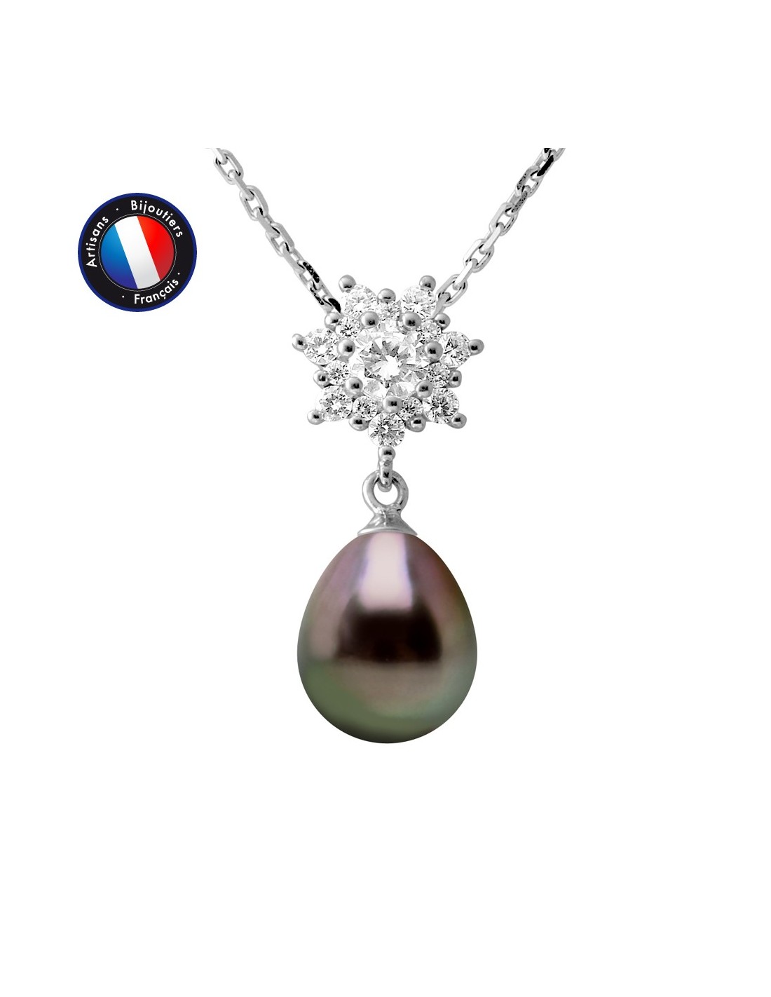 Collier- Véritable Perle de Culture de Tahiti- Diamètre 9-8 mm- Qualité de la Perle : AAA+- Oxyde de Zirconium- Chaîne For‡at / Longueur 42 cm- Argent 925 Millièmes Rhodié- Livré dans un écrin Prestige et accompagné d'un Certificat d'Authenticité et de Garantie- Fabriqué par nos Artisans Bijoutiers Français- Garanti 2 ans contre tout défaut de fabrication Internationale